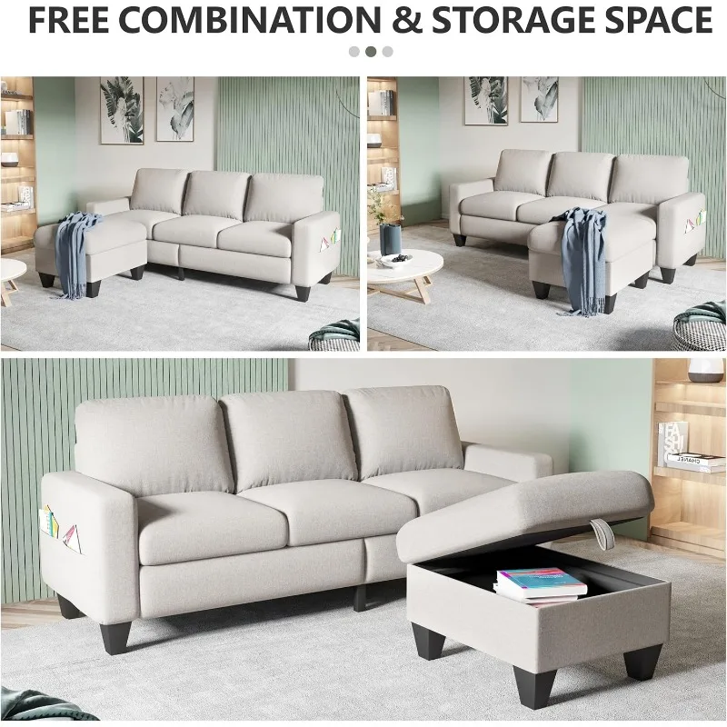 • 【Versatile Design】Our l shaped couch is designed to accommodate any living space, thanks to its removable storage ottoman. You can easily configure it in various ways to fit your needs, whether you want a traditional sofa, a sectional, or a sofa bed.