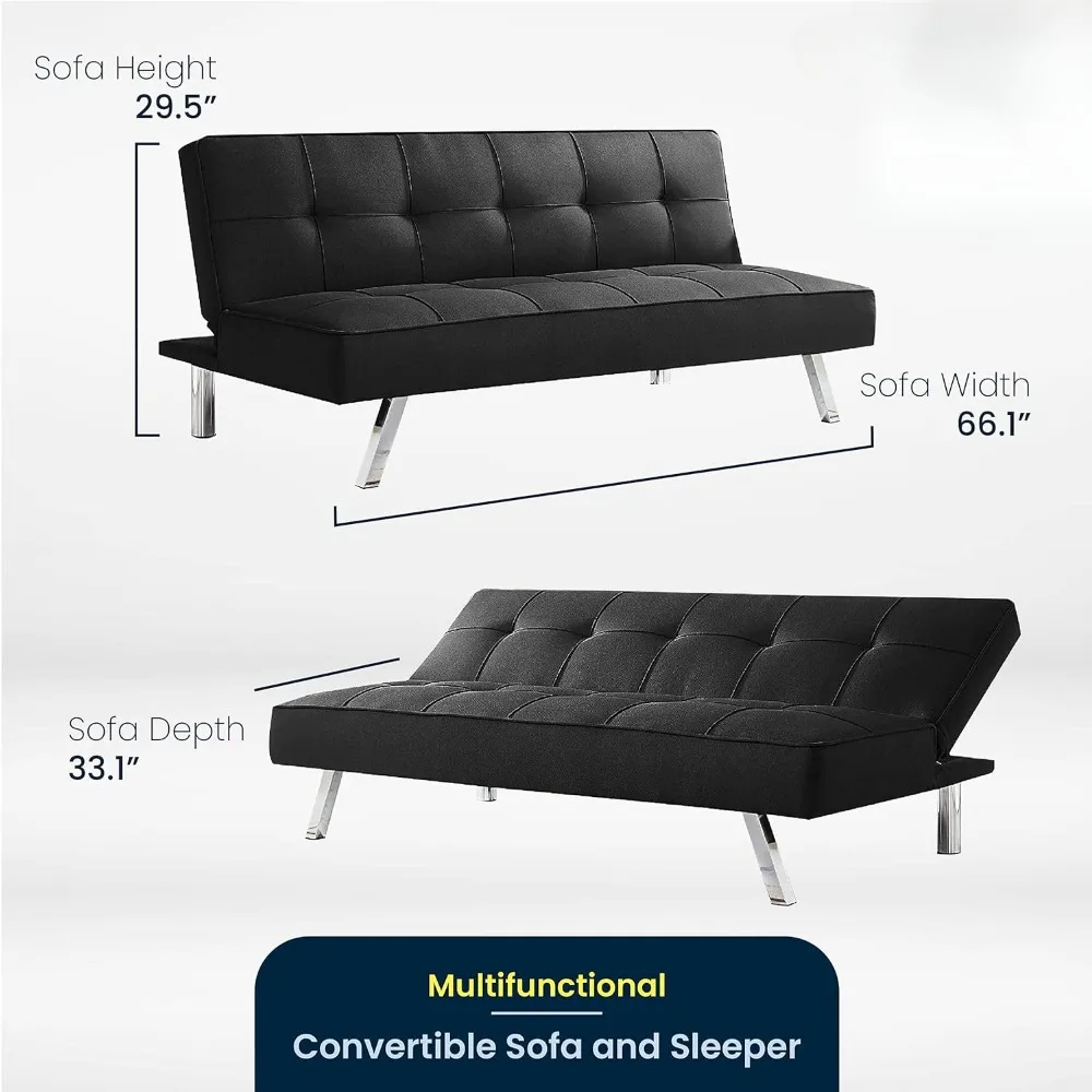 Convertible Sofa Bed Sofas for Living Room 66.1" W X 33.1" D X 29.5" H Black Home Furniture Folding