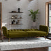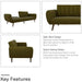 - Ribbed tufted cushioned back with slanted oak coloured wooden legs