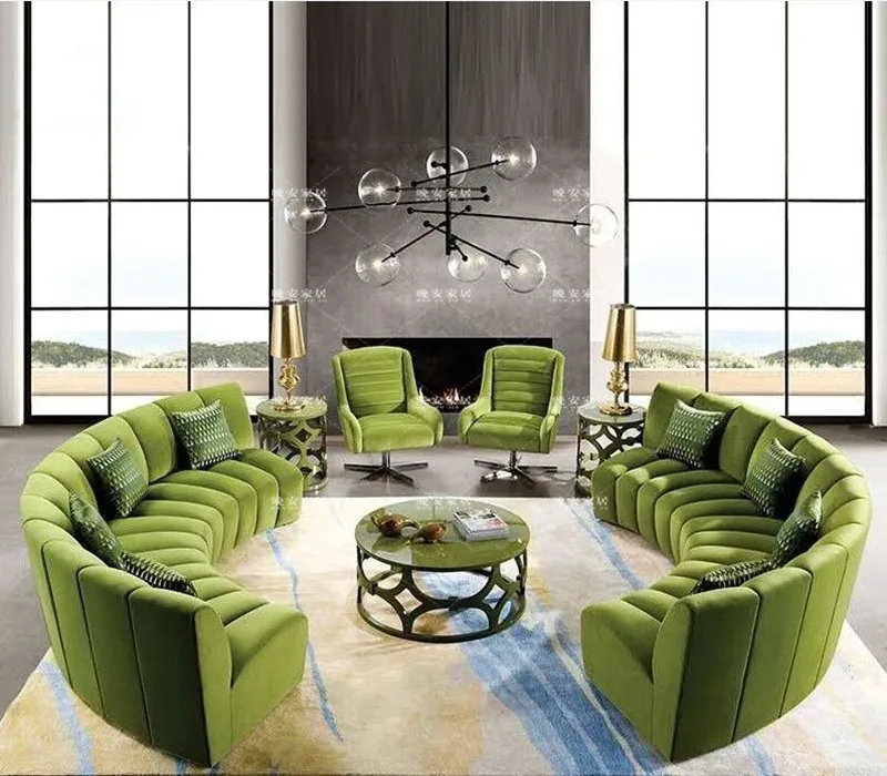 Customized: Custom Nordic semi-circular arc round fan-shaped lambswool modular sofa, large shopping mall reception Internet cele