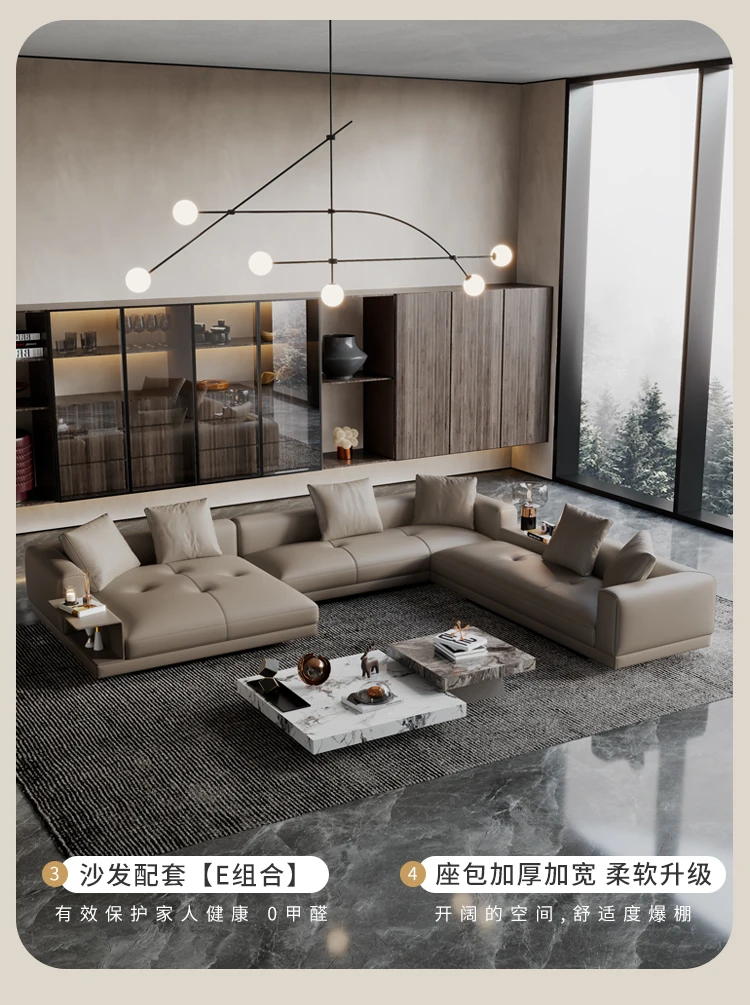 Customized Italian minimalist sofa Italian high-end grand villa large living room modern luxury leather sofa