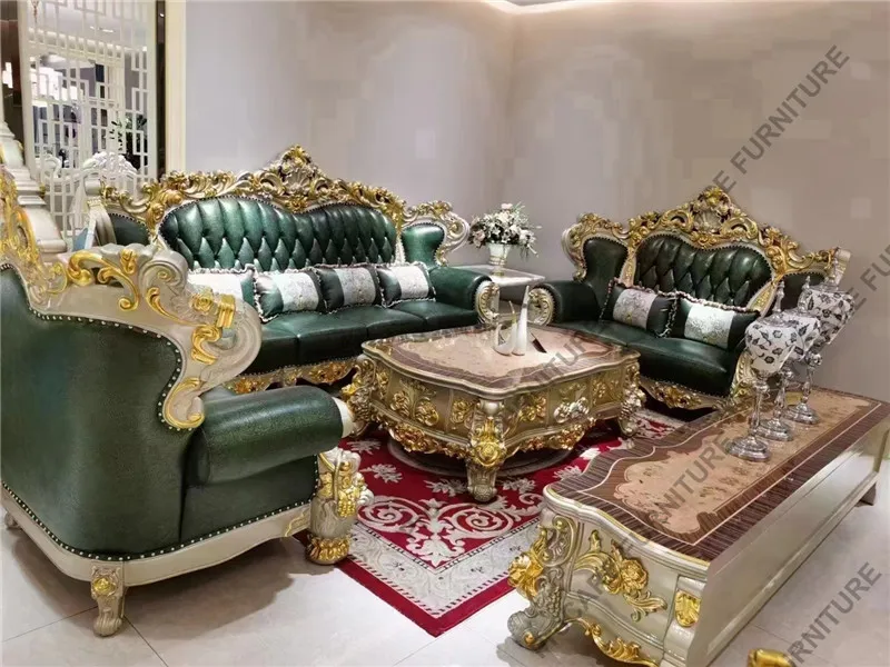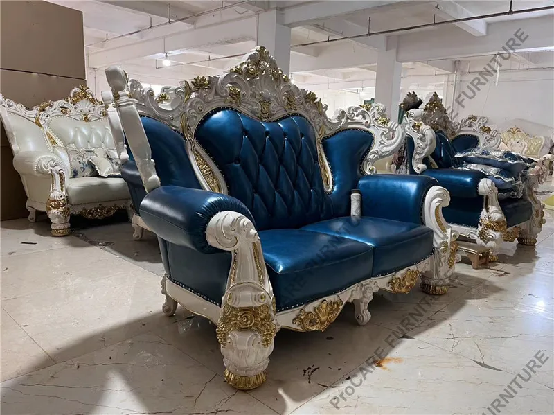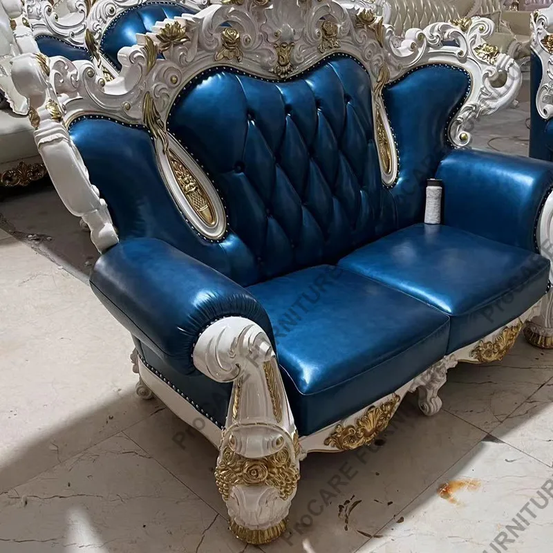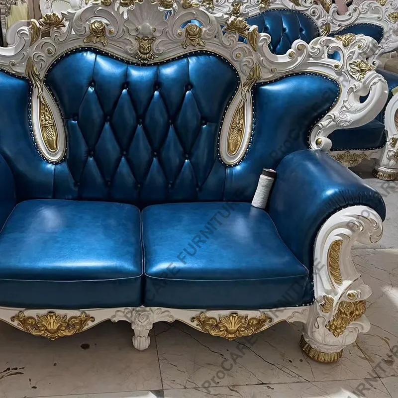 European genuine leather solid wood carved luxury sofa set living room furniture living room sofas