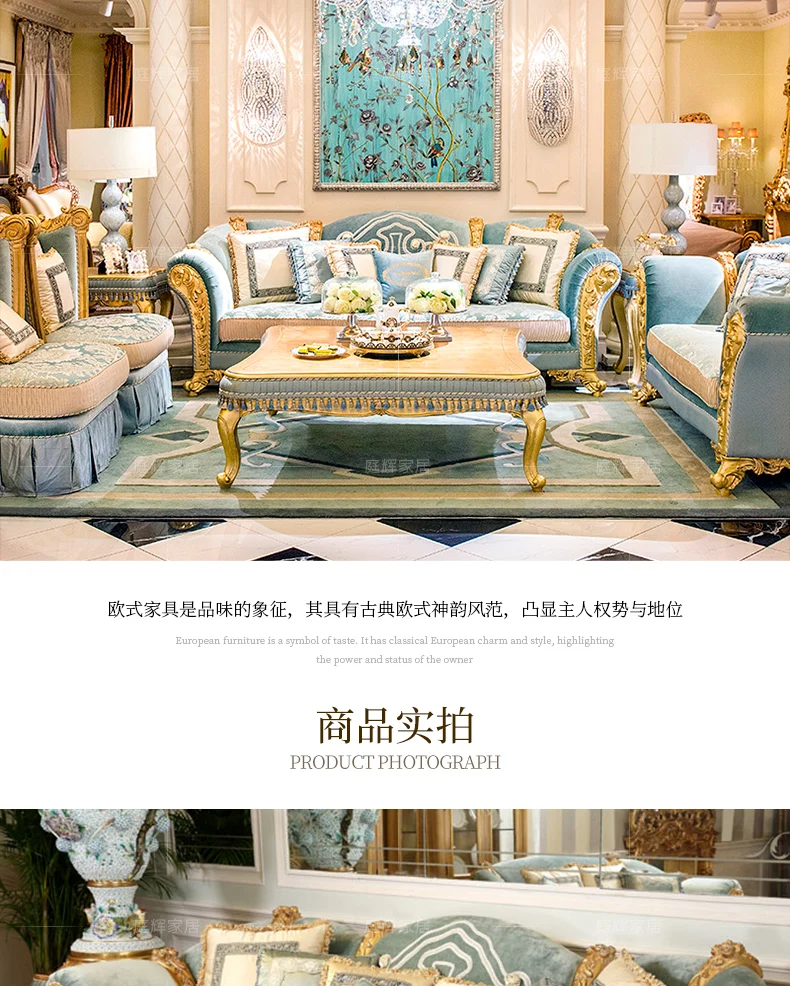 European solid wood carved coffee table group legal luxury cloth sofa villa living room furniture customization