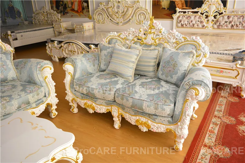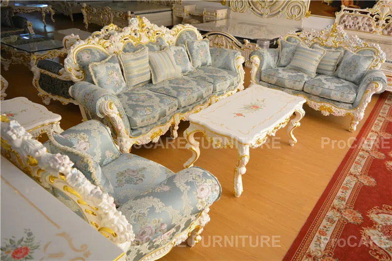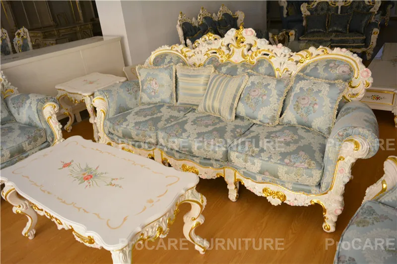 European solid wood sofa French luxury villa living room Custom high-end fabric sofa set