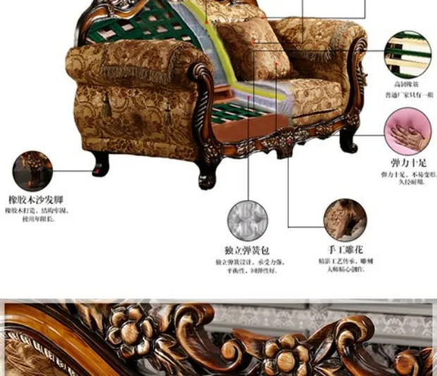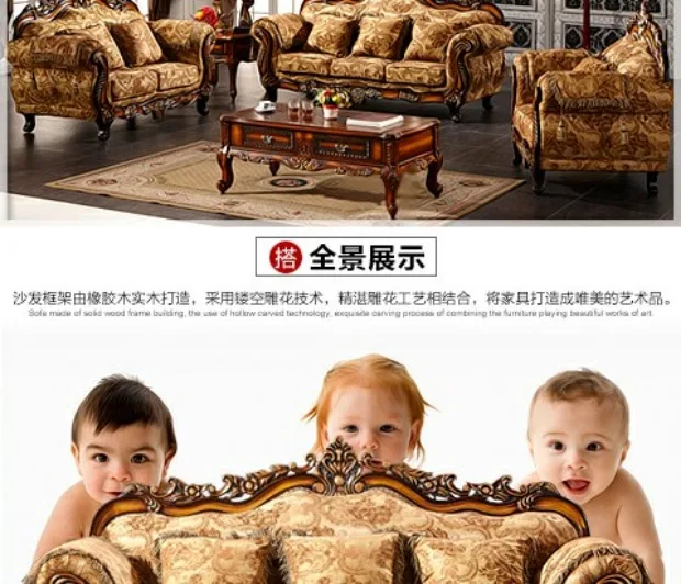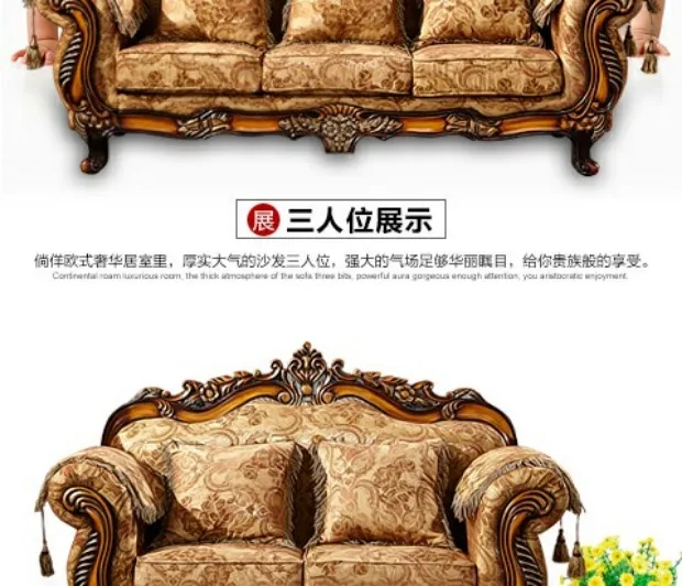 European-style Fabric Sofa Combination Removable and Washable Large Apartment Living Room Cotton and Linen Luxury Solid Wood Ame