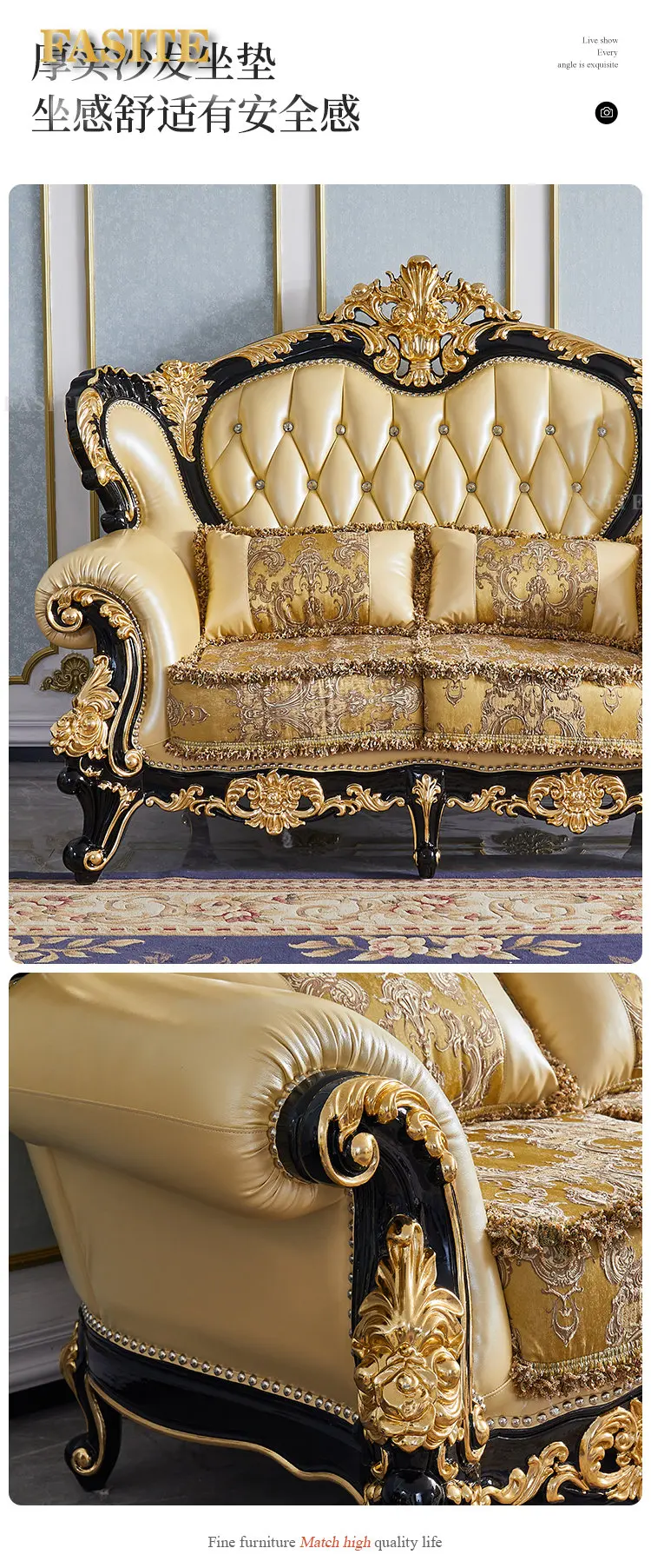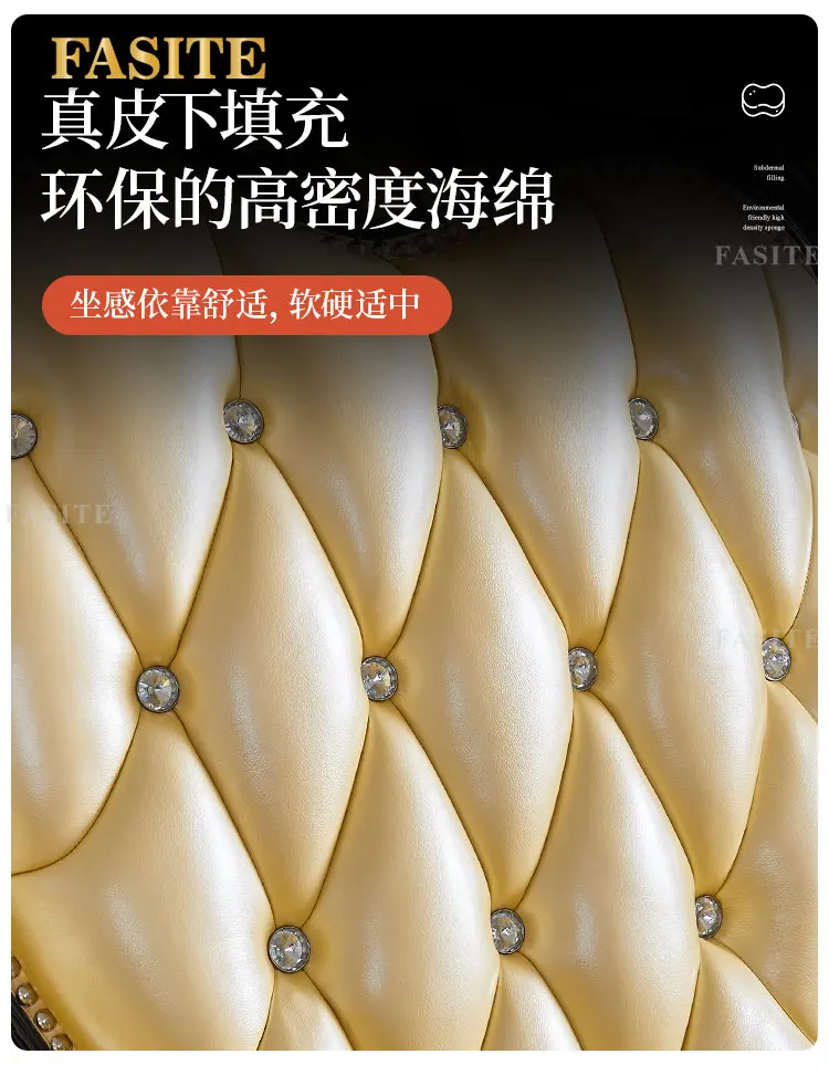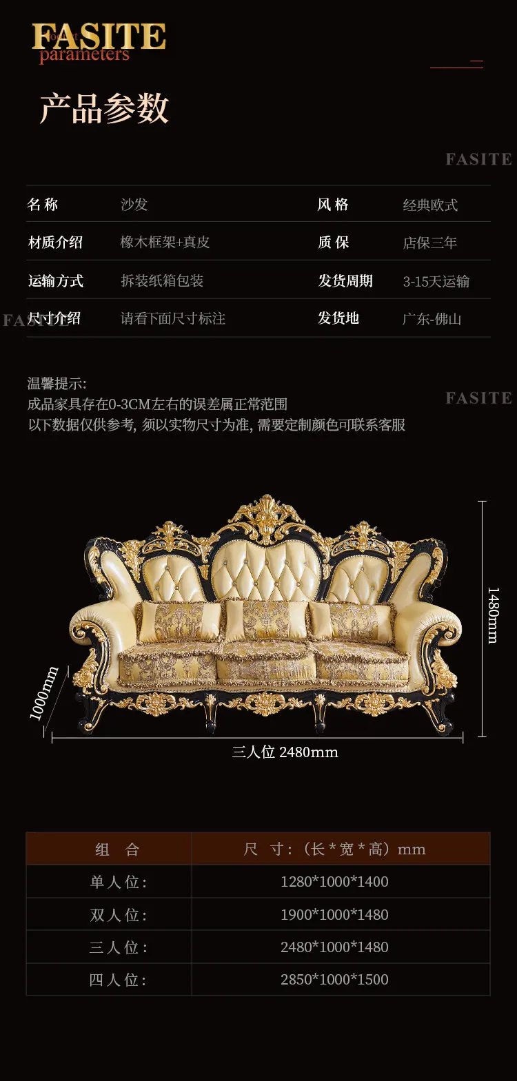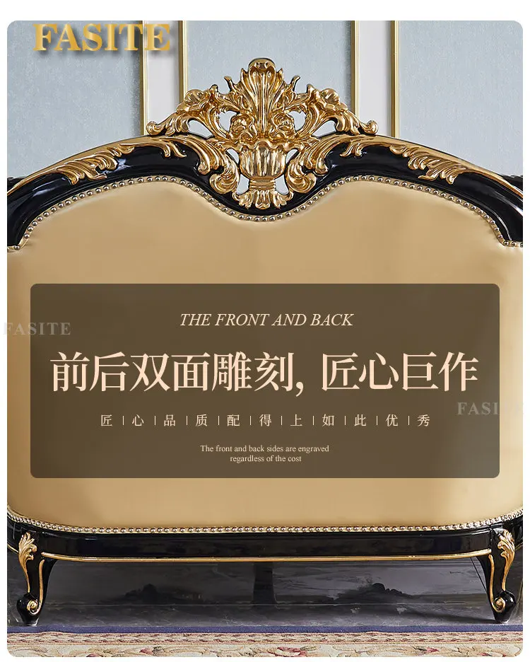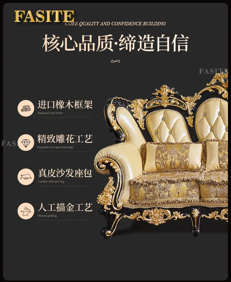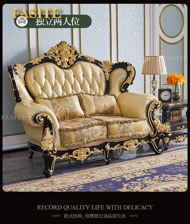 European style leather sofa combination living room large solid wood carved top layer cowhide furniture set