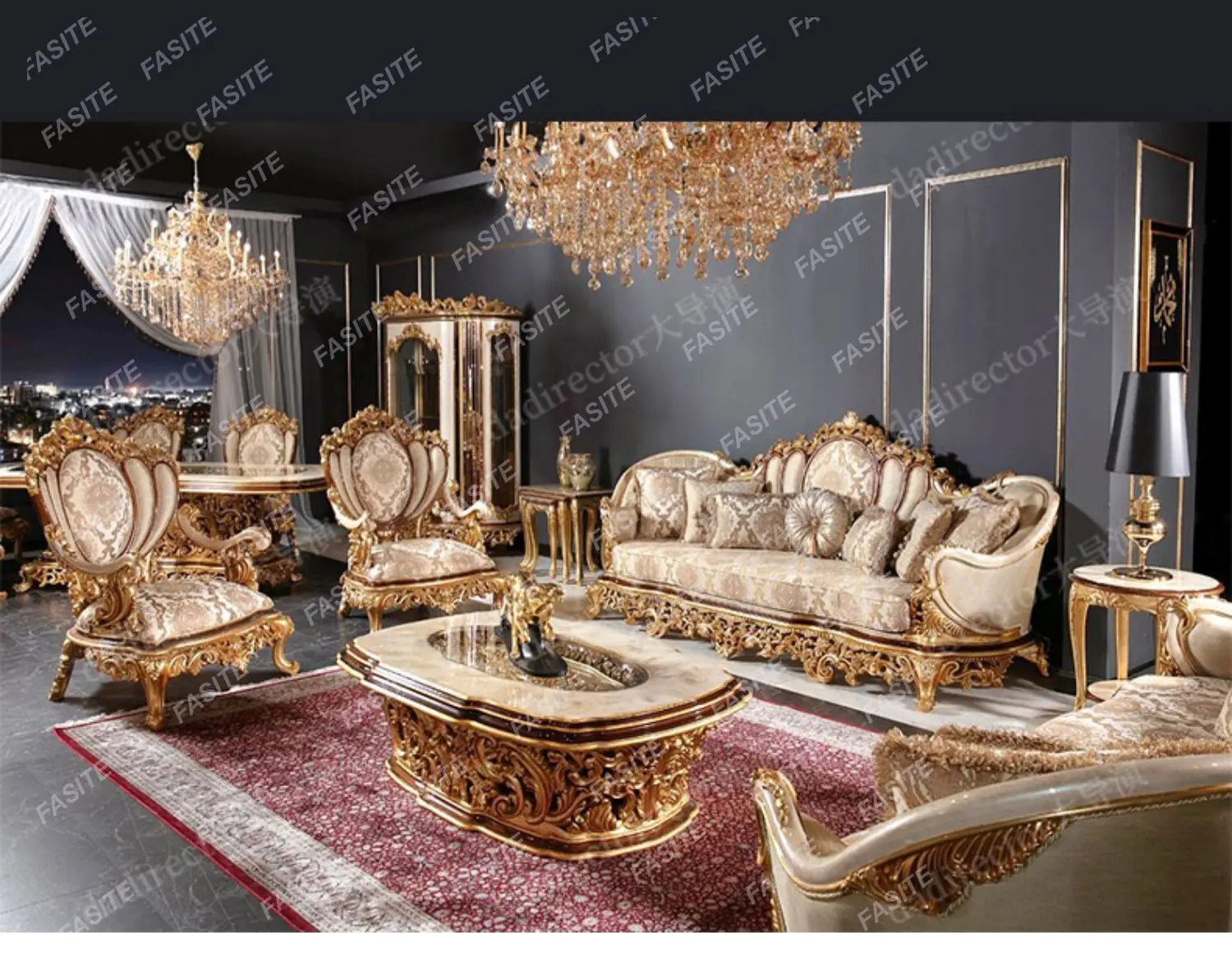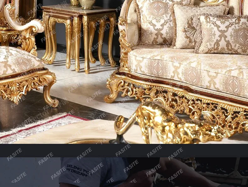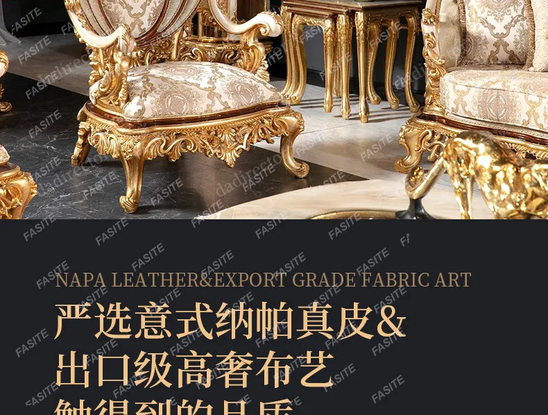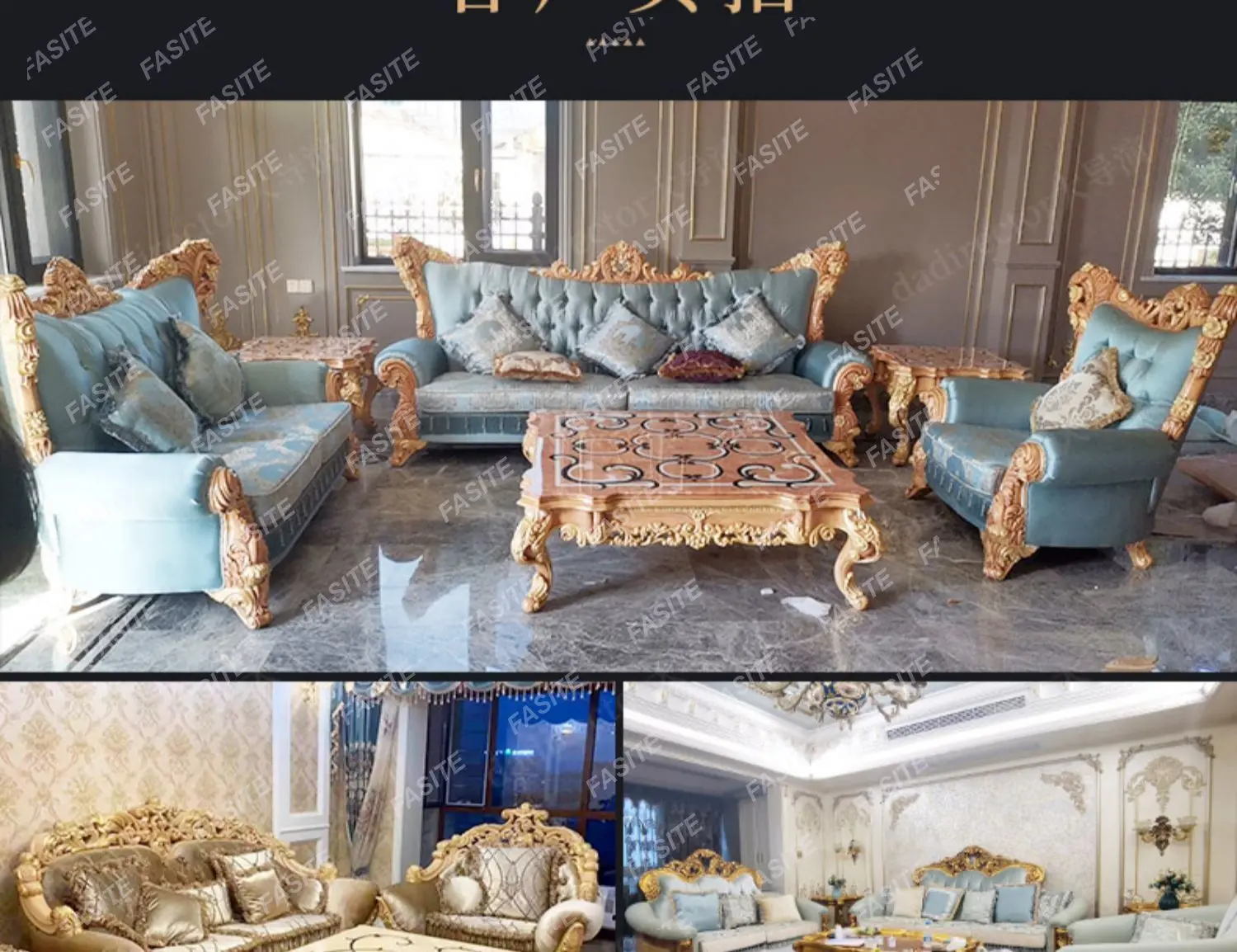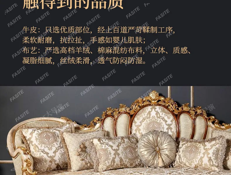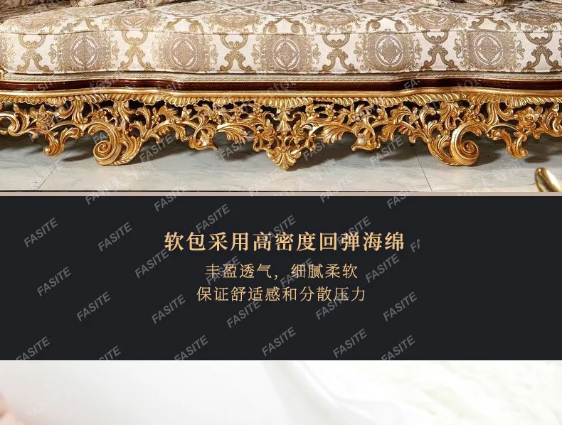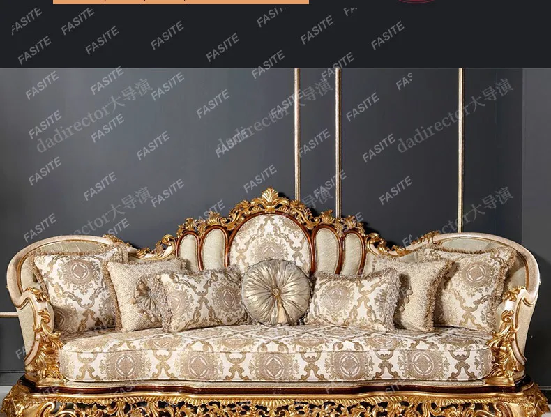 European style solid wood carving combination fabric sofa French style gold foil art sofa Luxury furniture customization