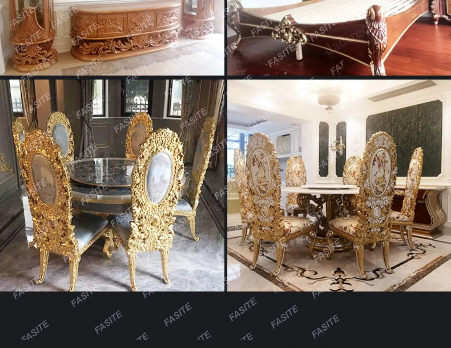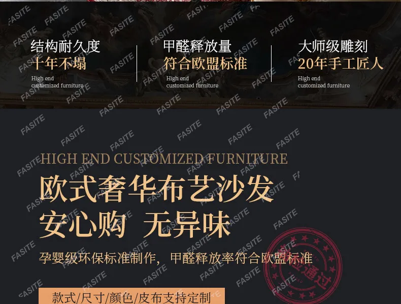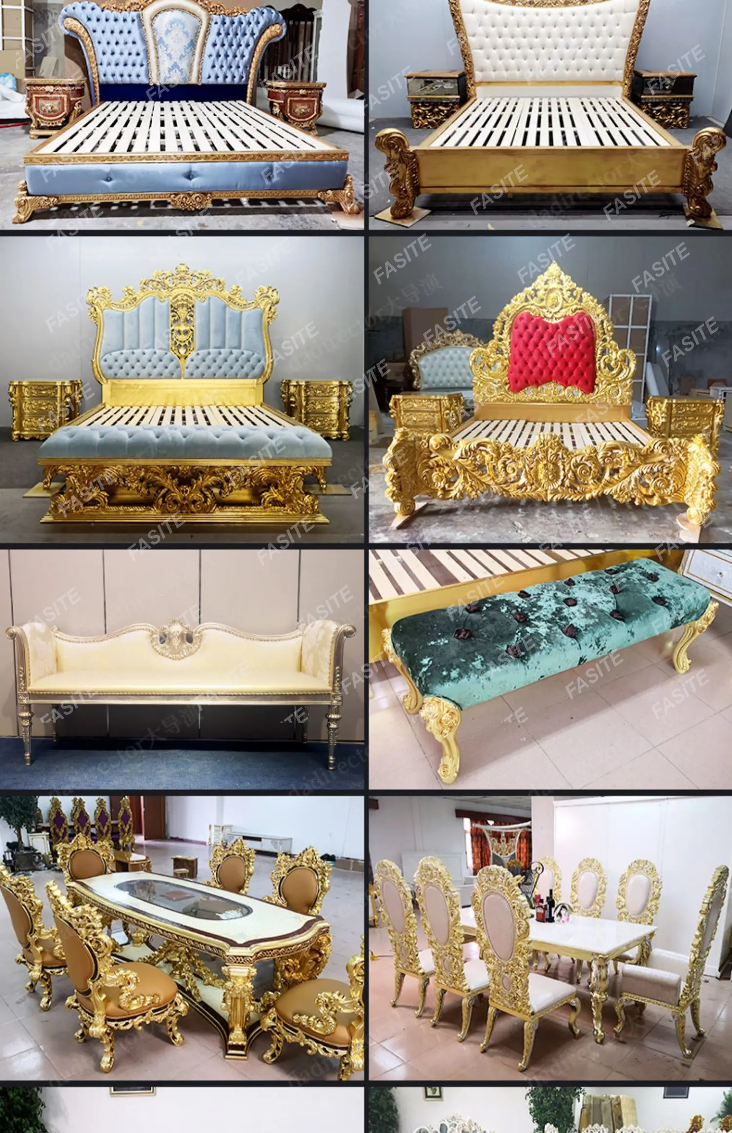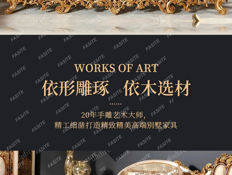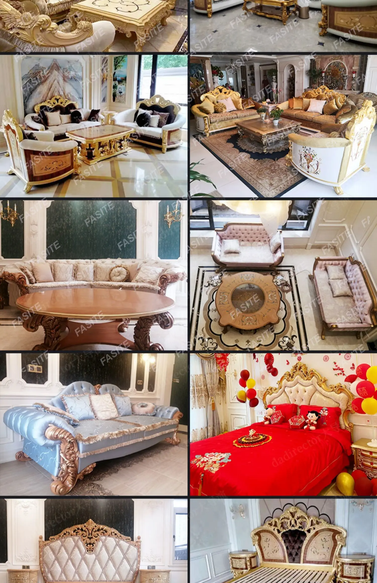 European style solid wood carving combination fabric sofa French style gold foil art sofa Luxury furniture customization