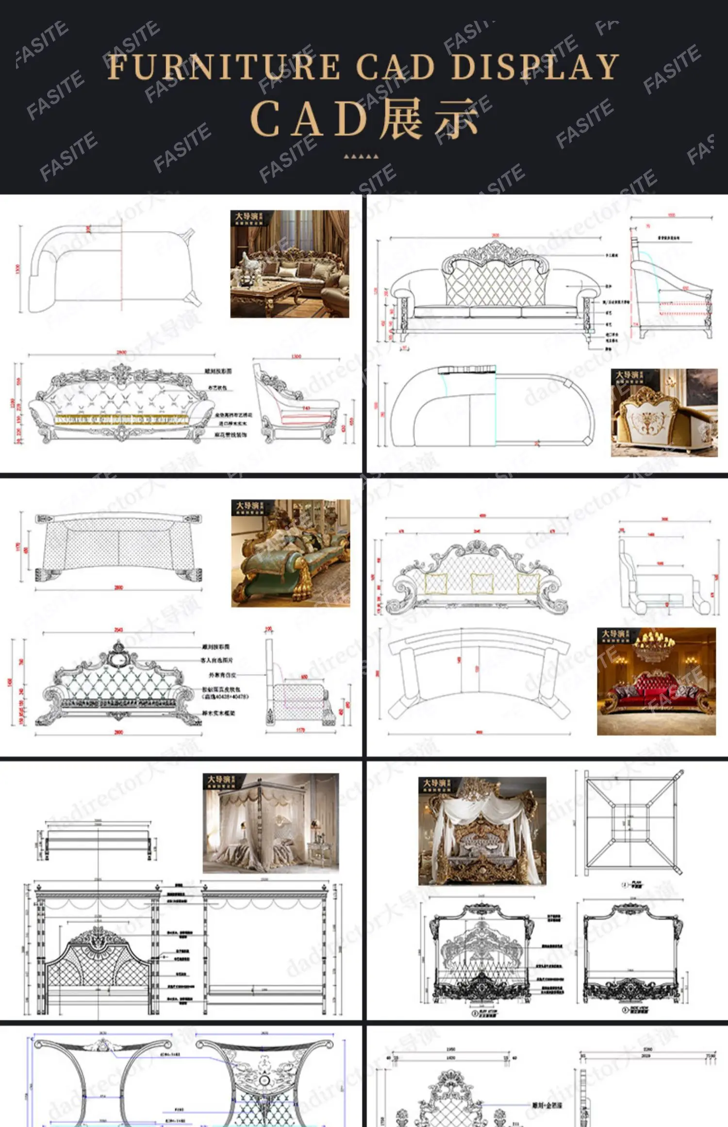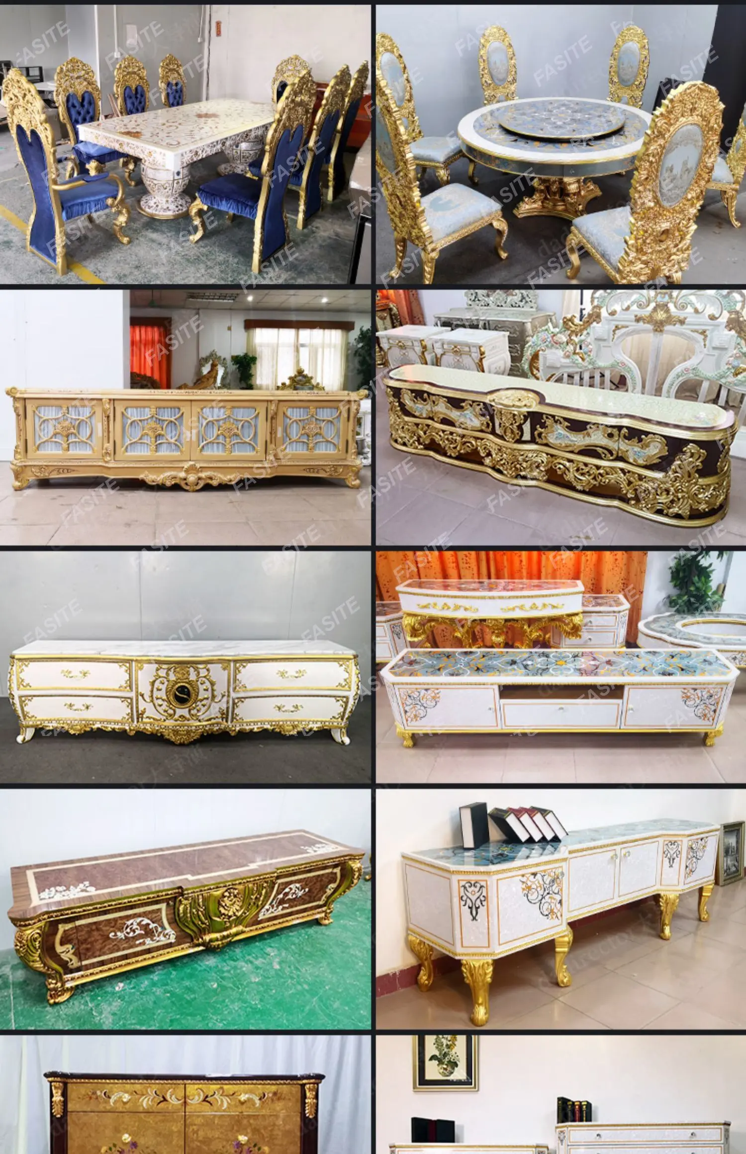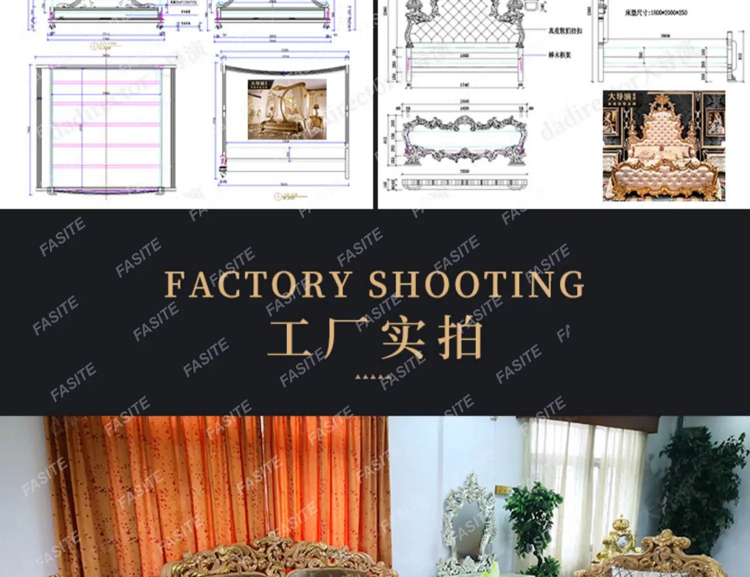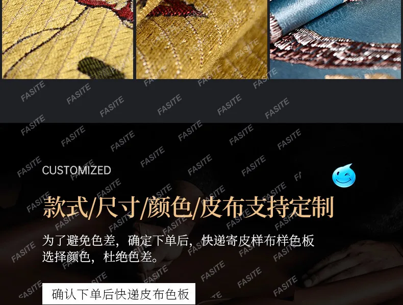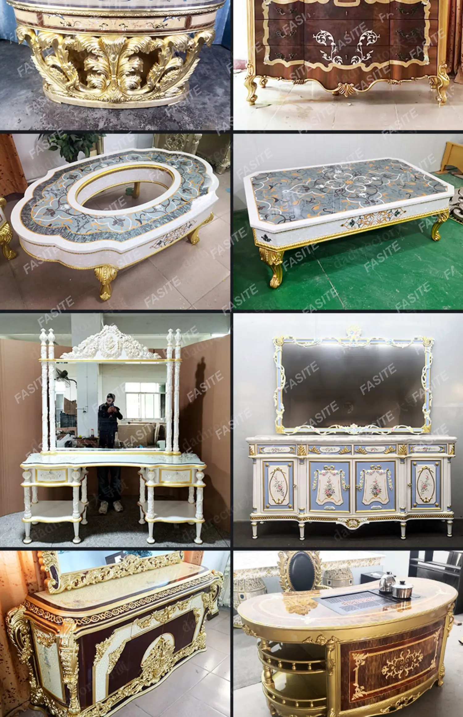 European style solid wood carving combination fabric sofa French style gold foil art sofa Luxury furniture customization