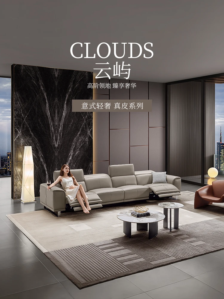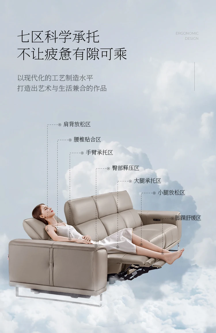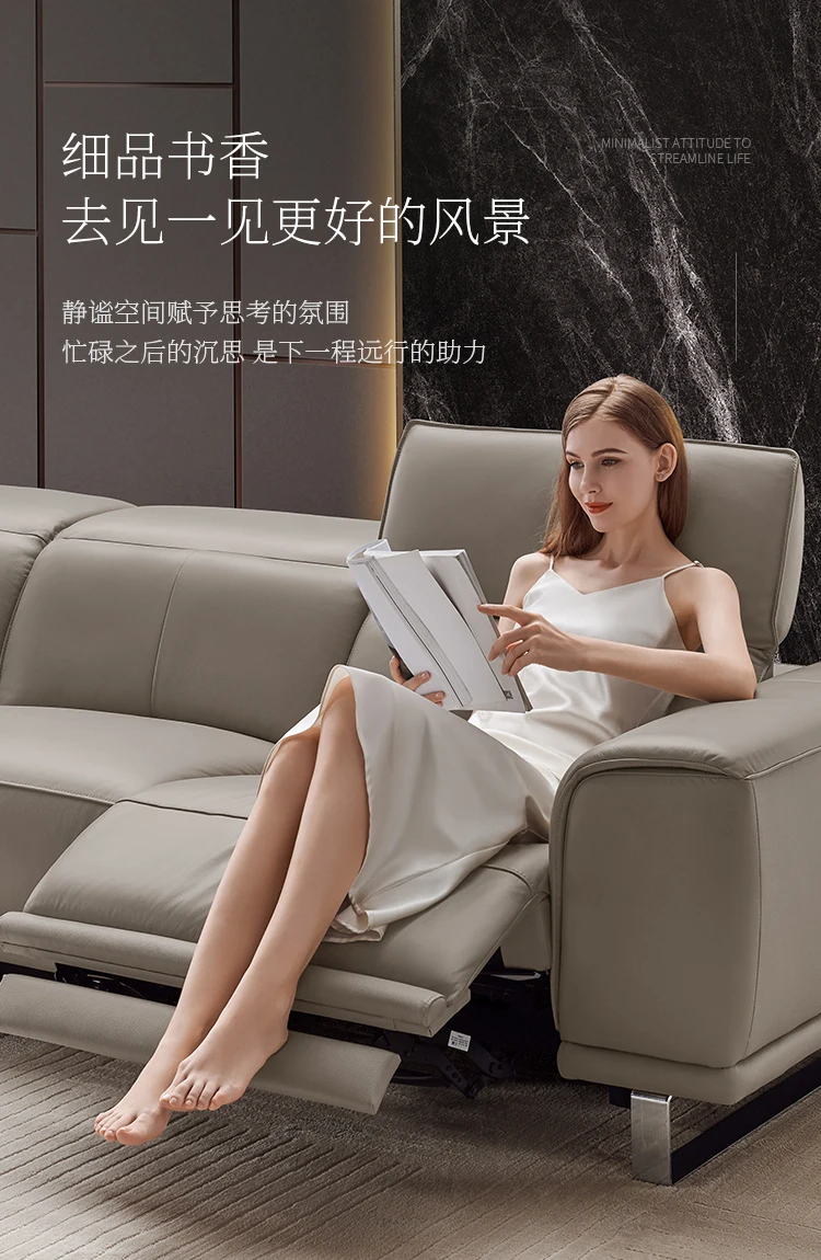First Class Leather Sofa Electric Function First Layer Cowhide Living Room Straight Row