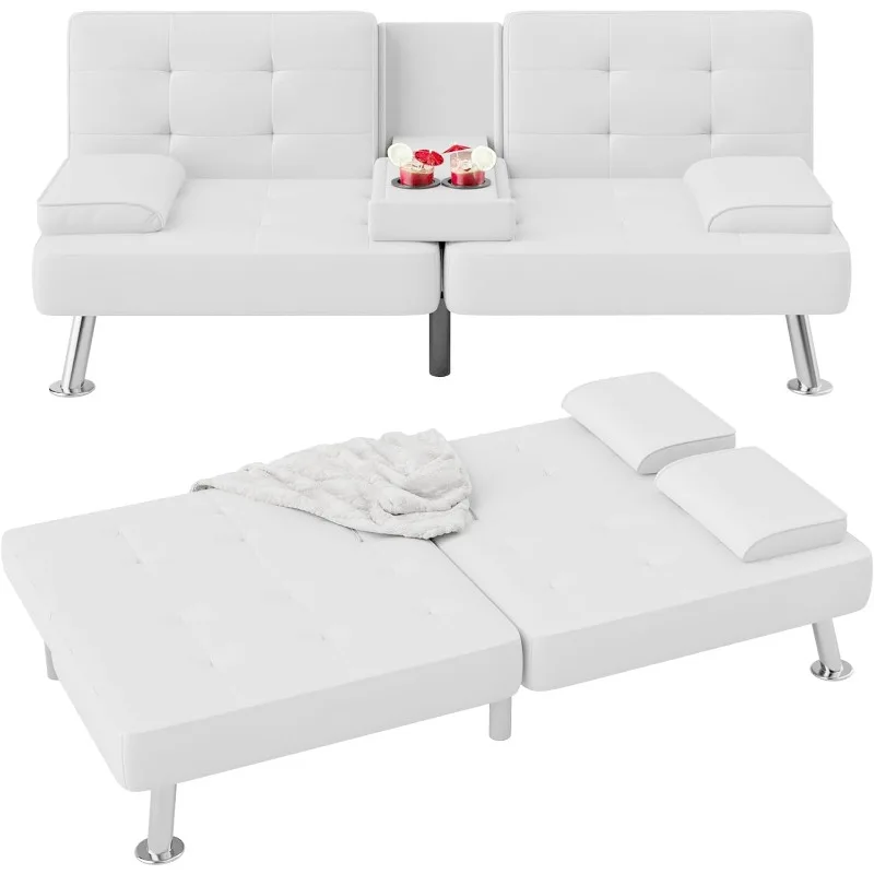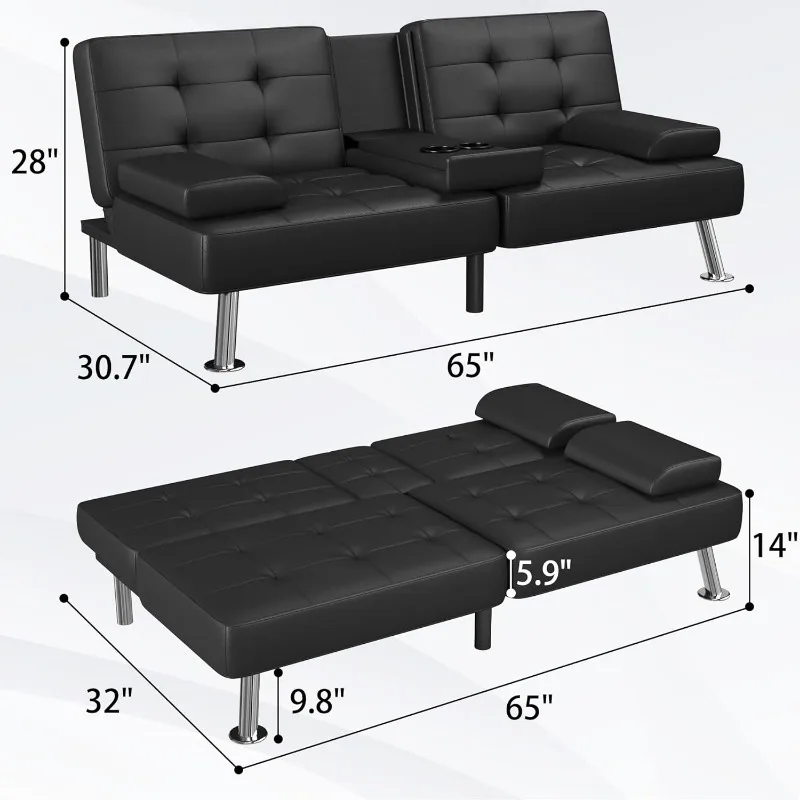 Flamaker Futon Sofa Bed Modern Faux Leather Couch, Convertible Folding Futon Couch Recliner Lounge for Living Room