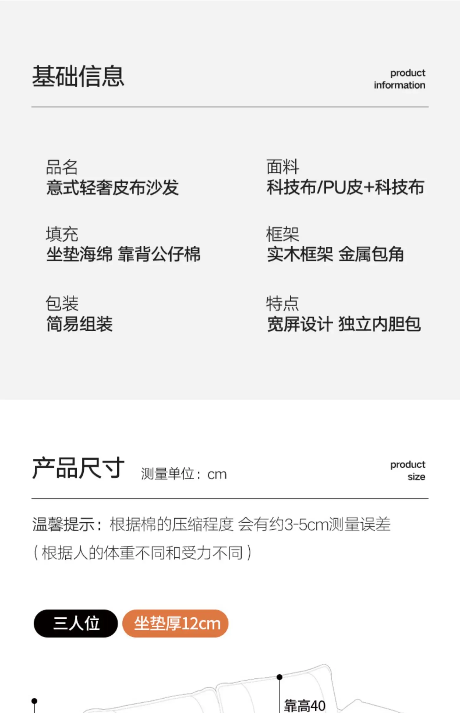 Sofa Width: 2000mm~2400mm