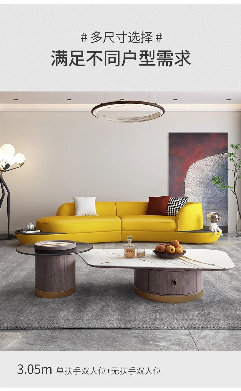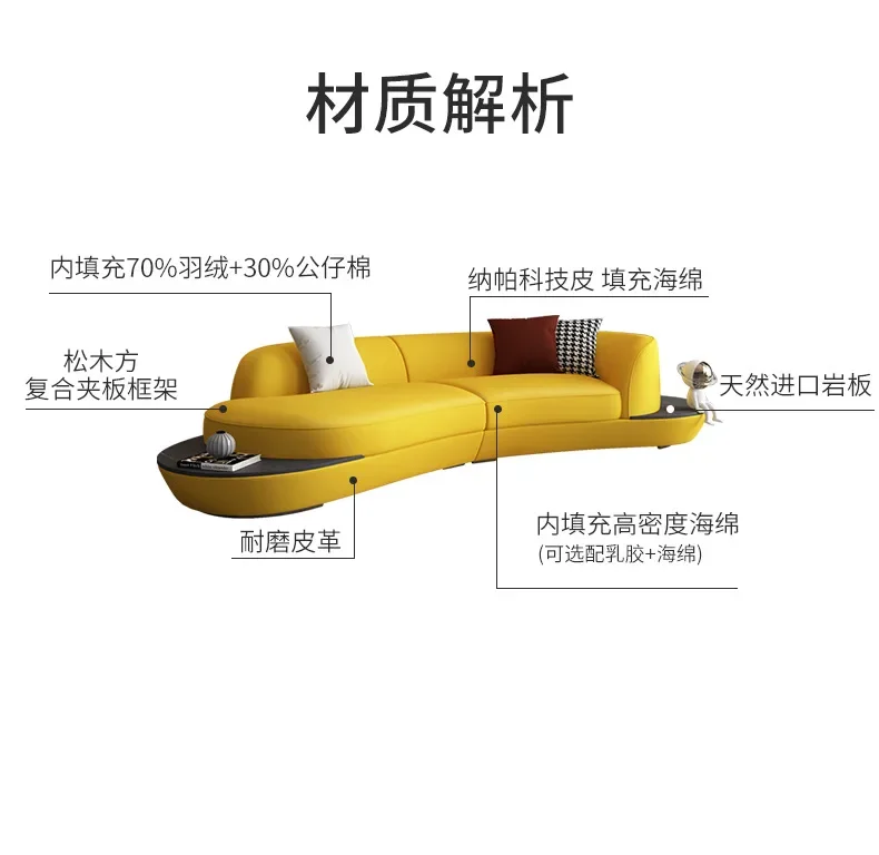 Foshan Fabrik Italienische Designer Stil Linsen Sofa Wohnzimmer Kleine Wohnung Komplette Set von Möbel Ecke Gebogene Sofa
