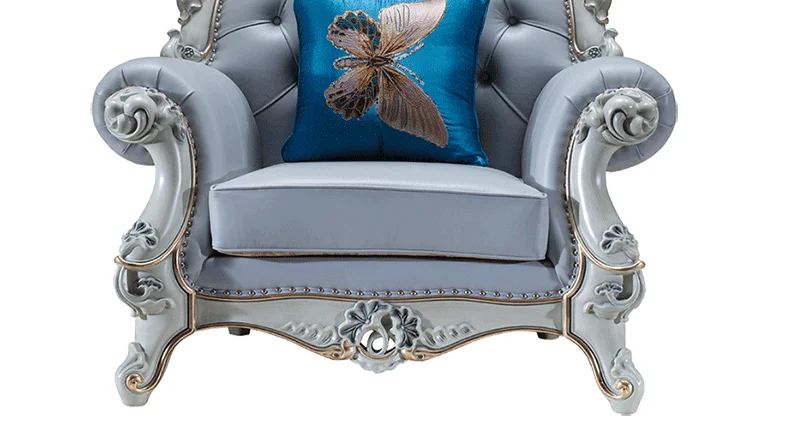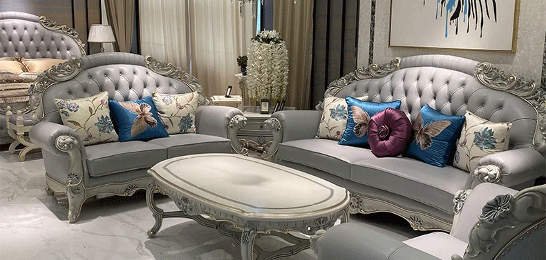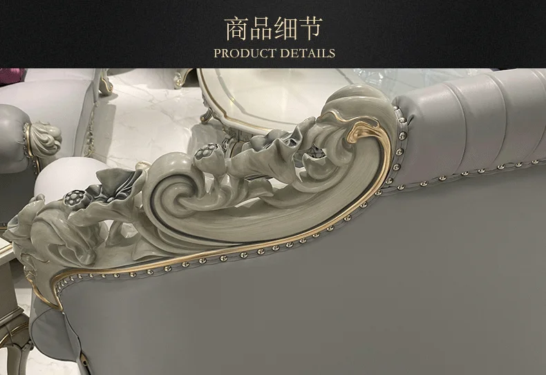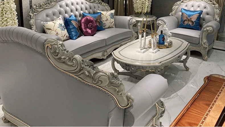 French light luxury sofa American villa living room neoclassical solid wood carved luxury simple European leather furniture
