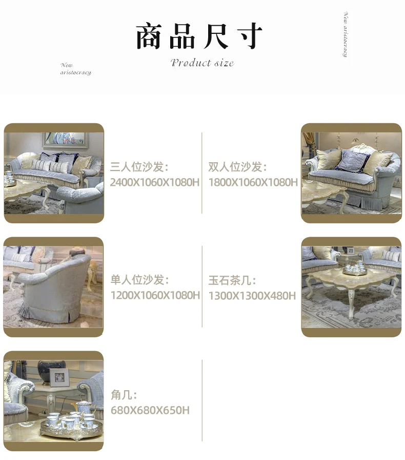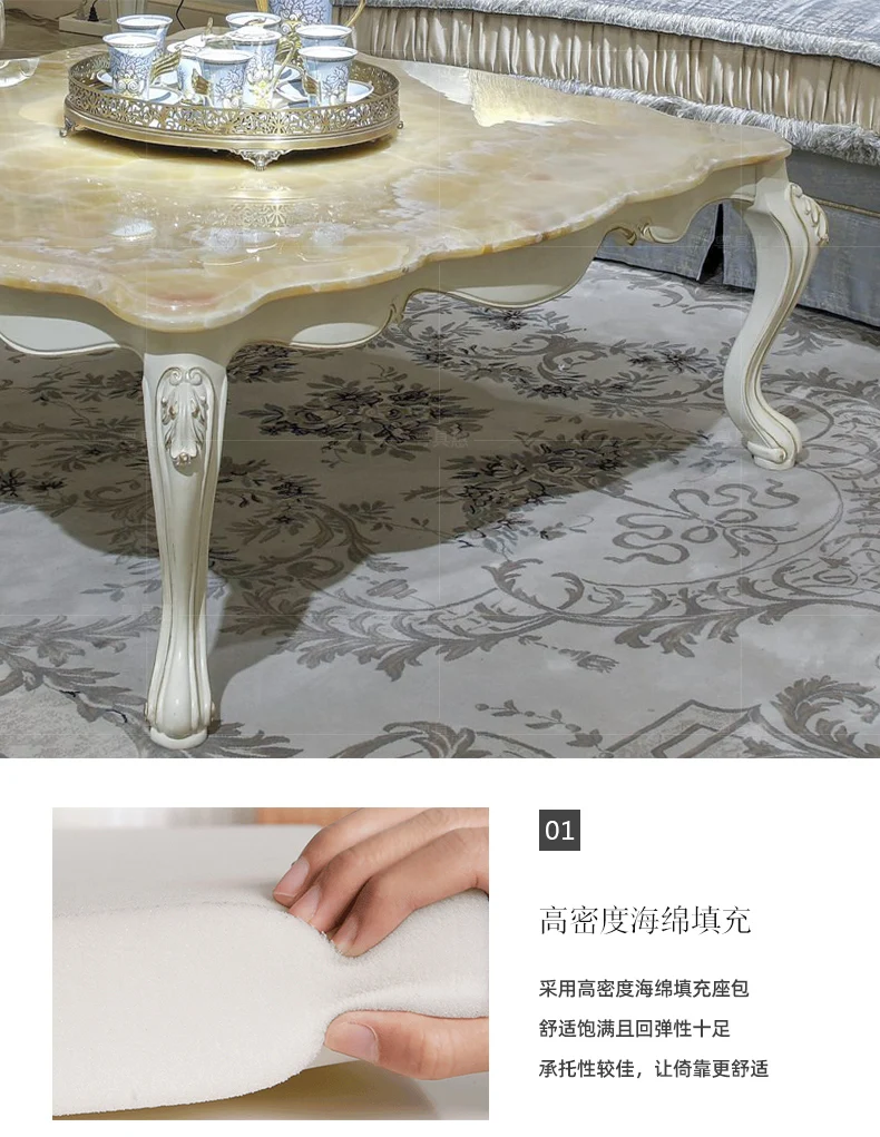 French neoclassical cloth sofa, large family living room furniture, European solid wood carved sofa combination