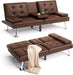 Futon Sofa Bed, Faux Leather Sleeper Sofa with Mattress and Frame, Convertible Futon Couch for Living Room, Black