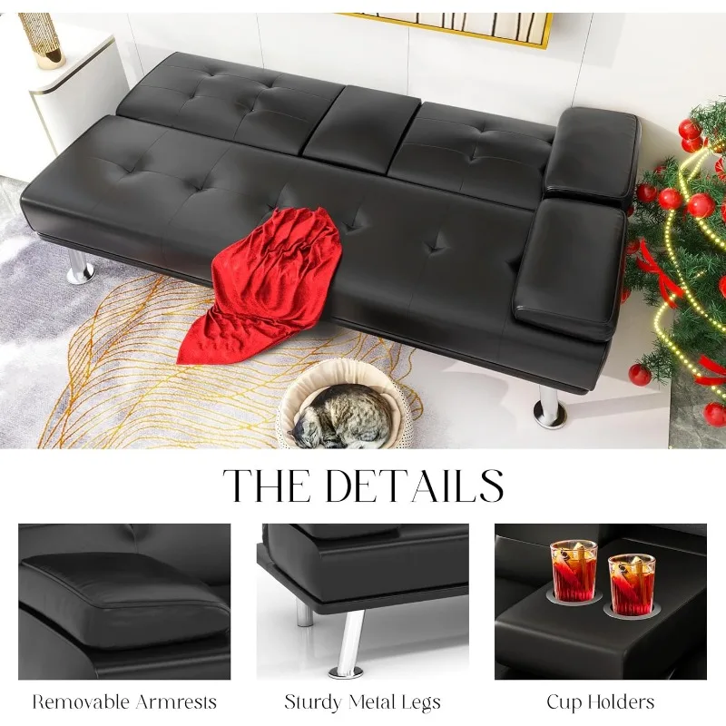 - 🌟【MODERN AND STYLISH DESIGN】Enhance the aesthetic appeal of your living room, bedroom, study, guest room, or office with this modern futon sofa bed. The sleek PU leather/fabric upholstery, complemented by glossy metal legs, adds a touch of sophistication to any space. Experience ultimate comfort and style with our Futon Sofa Bed.