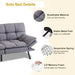 - 【Multi-angle Adjustable & Convertible Futon Sofa Bed】The backrest of the futon couch bed can be adjusted to 120-180°. The armrest can be adjusted to 135-180°, which can be raised as armrests, sleep pillows or footrests, or drop flat to seat more people. Push-pull design, the futon sofa easily converts into a bed.Weight Capacity: 600 lbs.