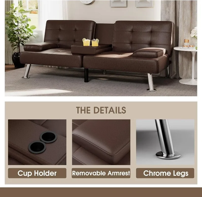 - HIGH-QUALITY MATERIAL: Our futon sofa is made of smooth and high-quality PU leather/Fabric, which is very skin friendly and durable. Chrome metal legs increase the stability and can hold up to 410lbs.