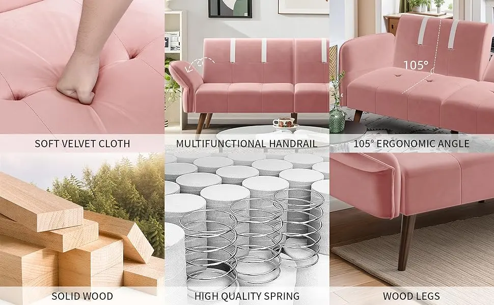 Futon Sofa Bed Modern Folding Sleeper Couch Bed for Living Room,Velvet Loveseat Sofa Couch Sofa cama for Apartments