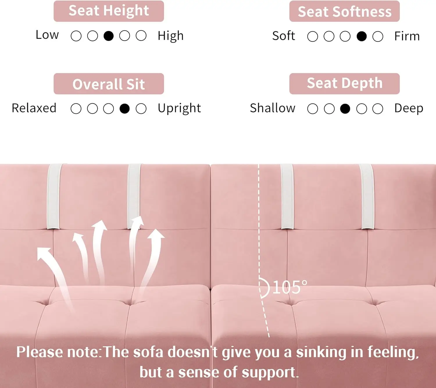 • Comfortable Loveseat Sofa: The sofa is made of modern Velvet fabric with a hardwood frame as the basic structure. The Velvet fabric is comfortable and not easy to pilling, fading. Soft cushions and a reinforced back, eases the rebound, providing strong comfort.