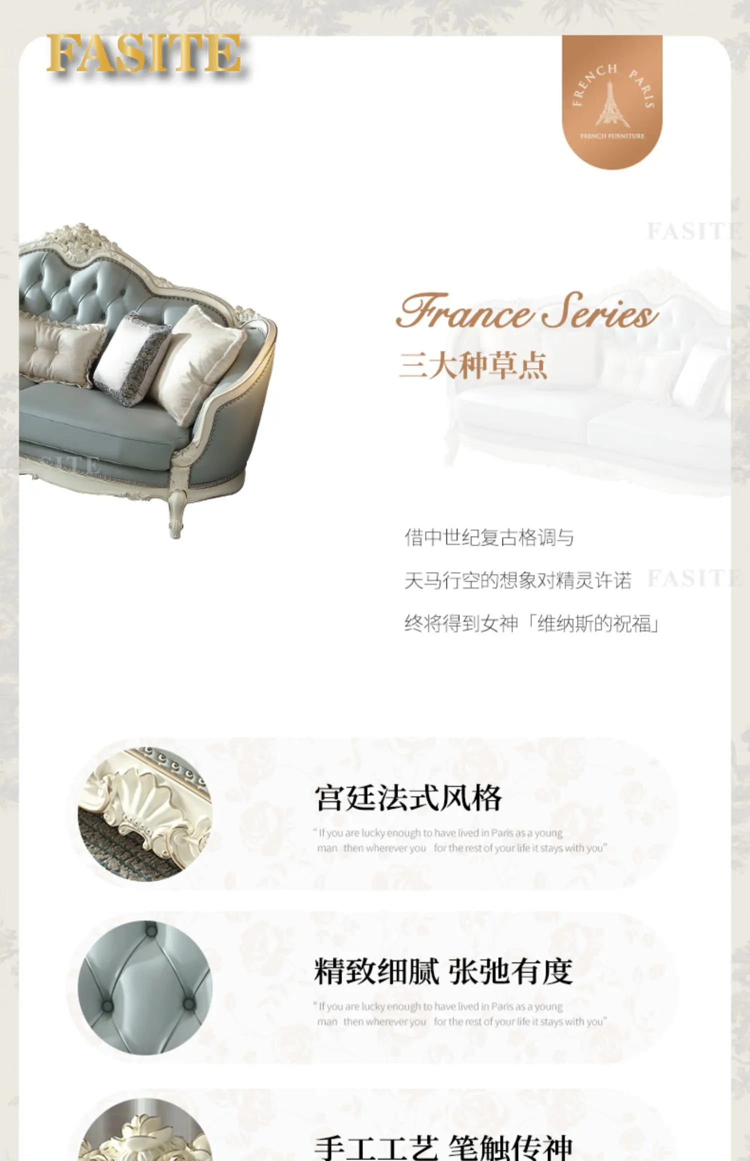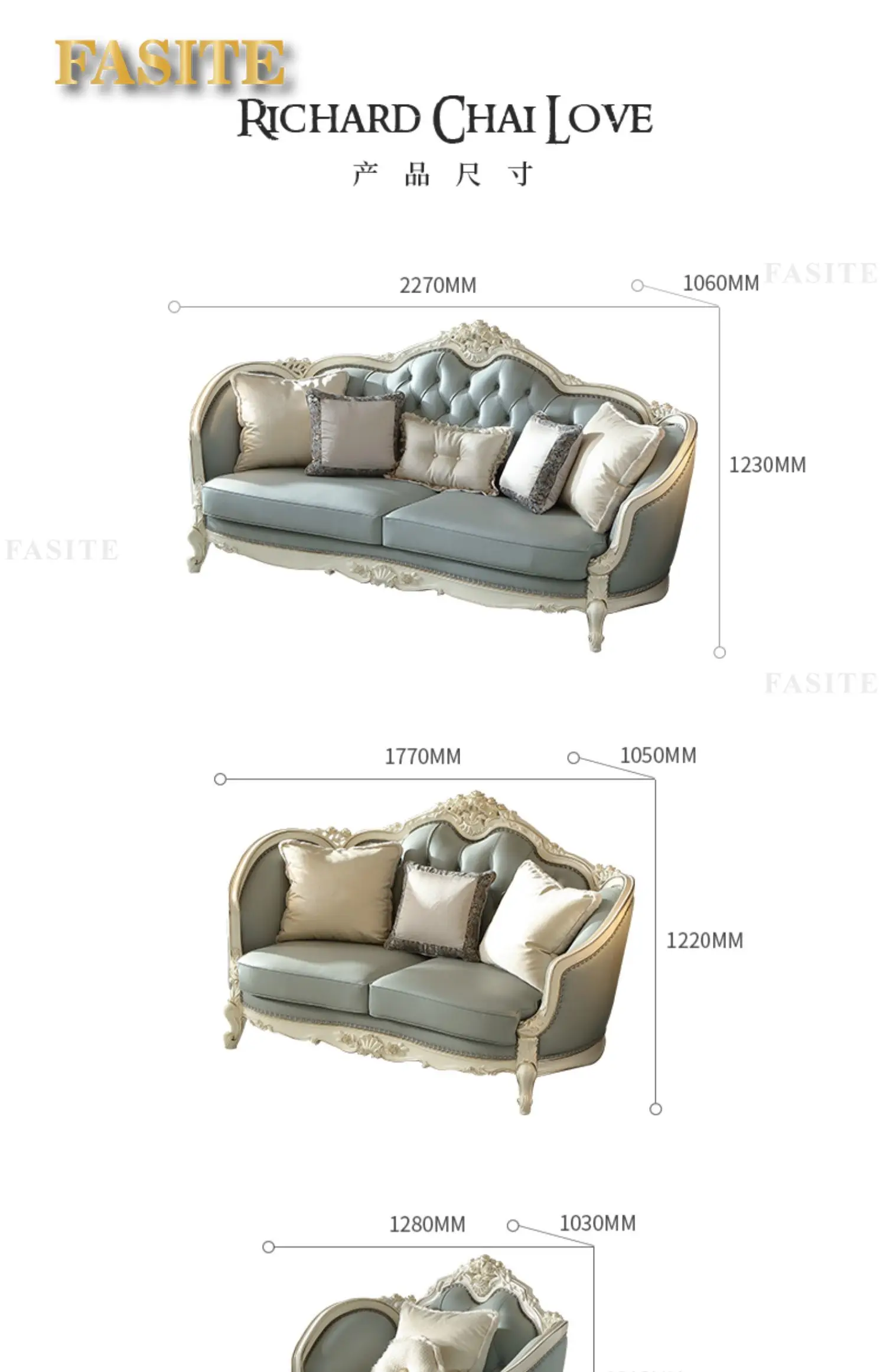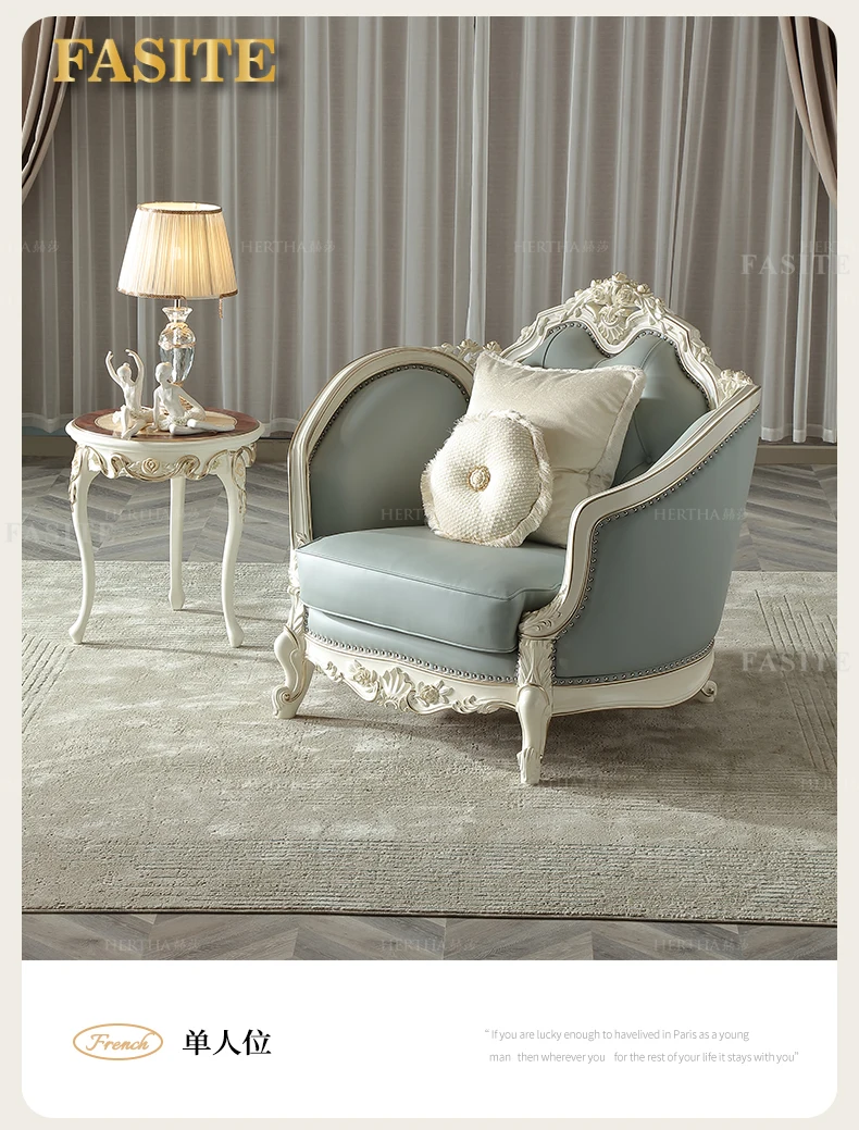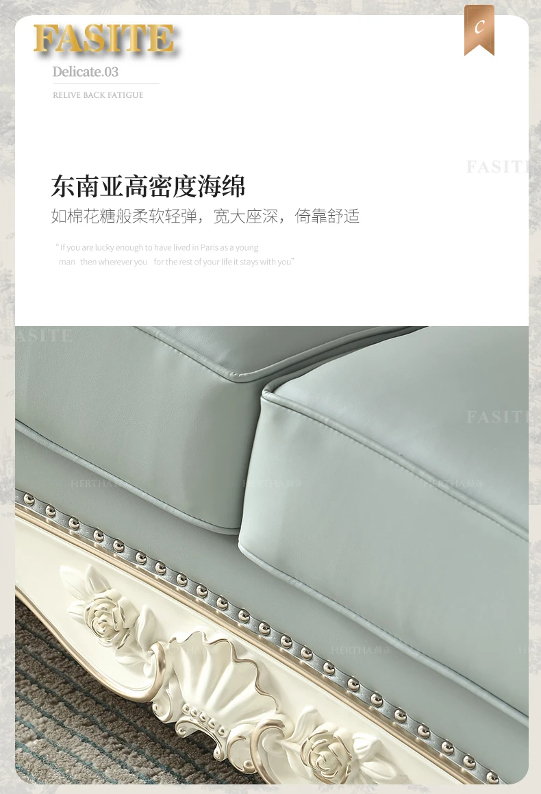 Genuine leather sofa combination, beech wood carving, European style villa, living room, sofa top layer, genuine leather