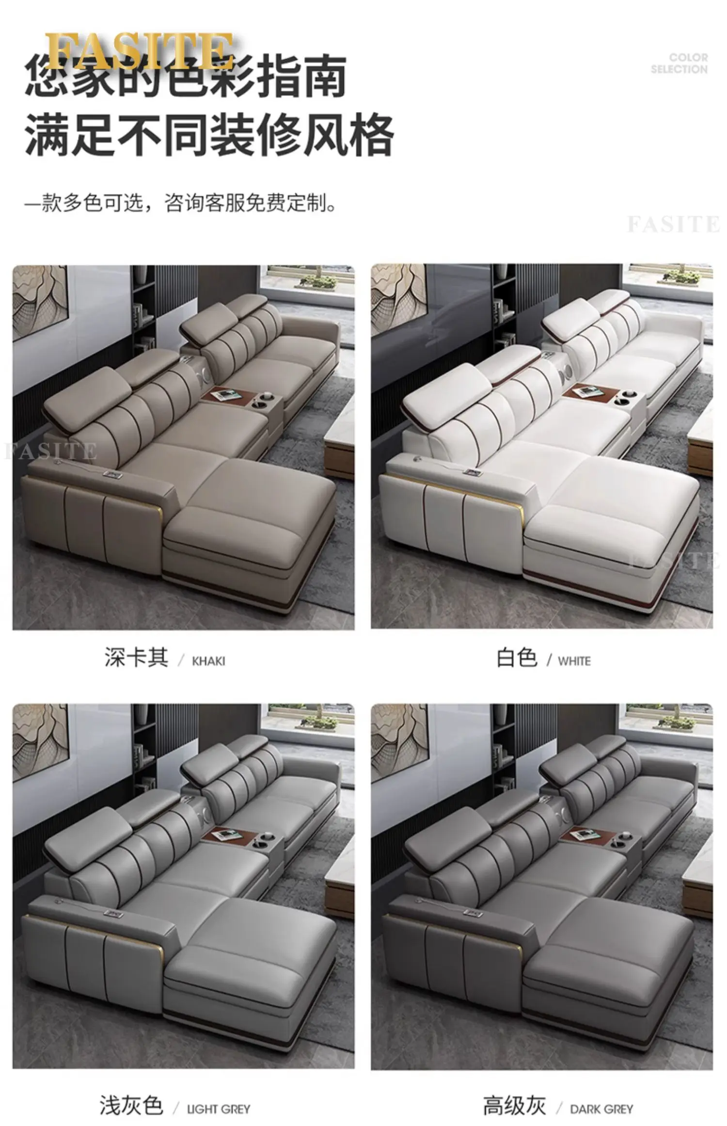 Genuine leather sofa, modern minimalist living room, small unit, minimalist and luxurious style
