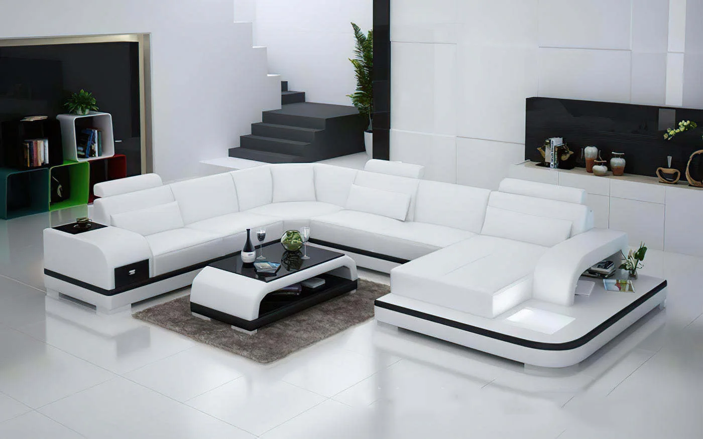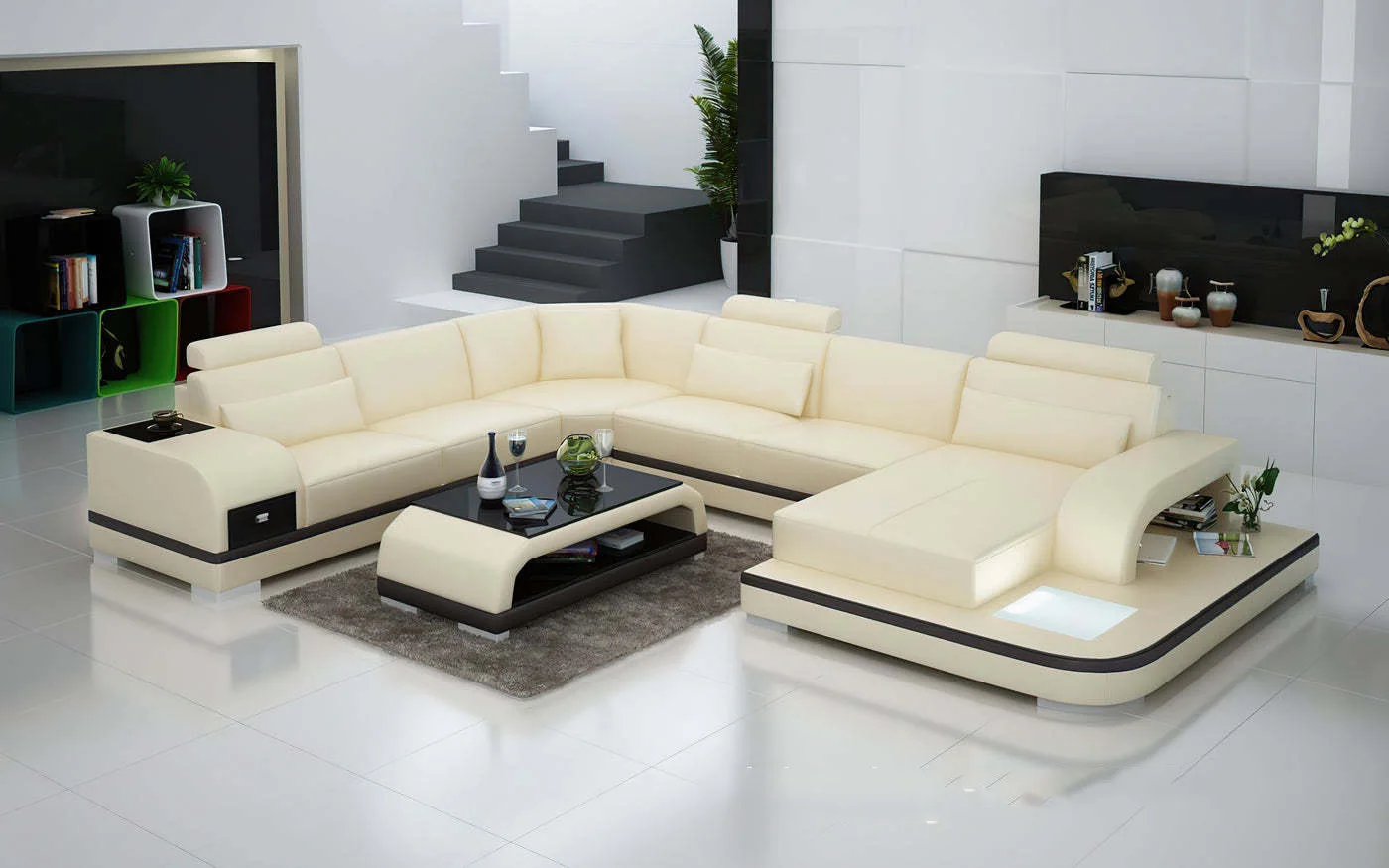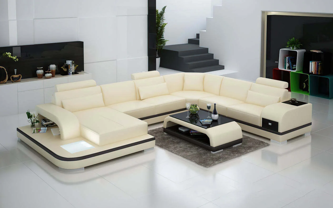 Genuine leather top firs layer cowhide minimalist modern furniture corner intelligent sofa large combination set ly06