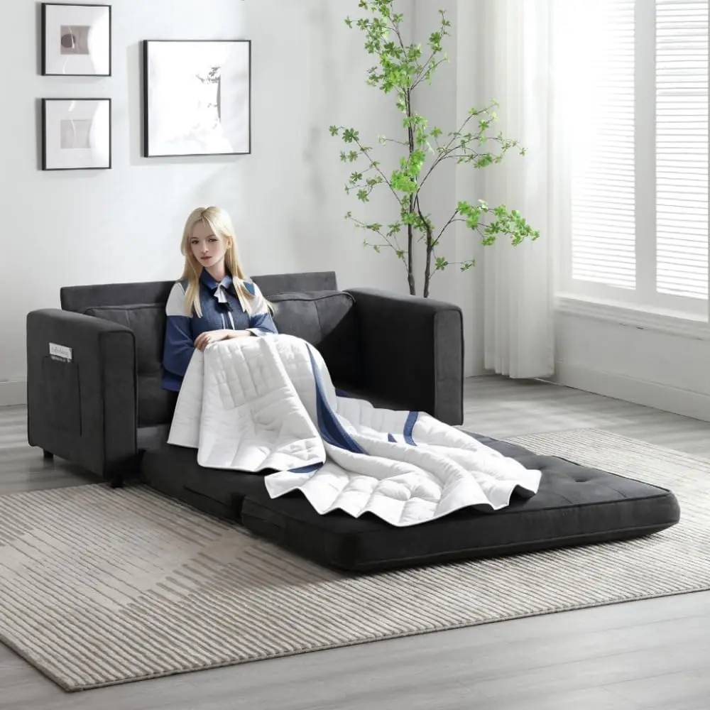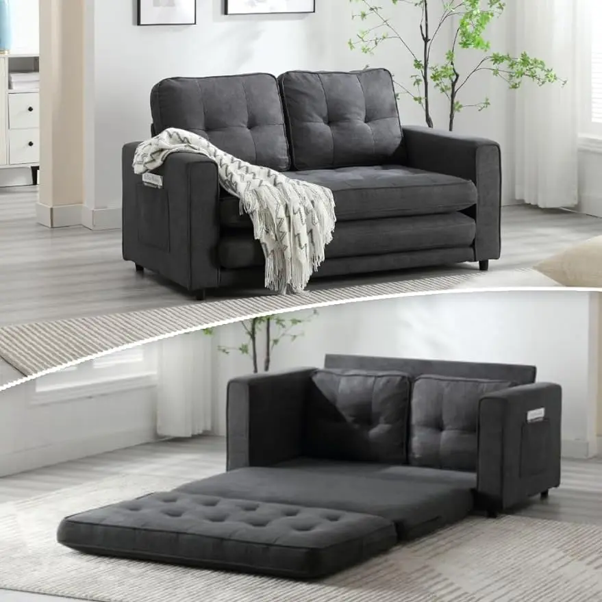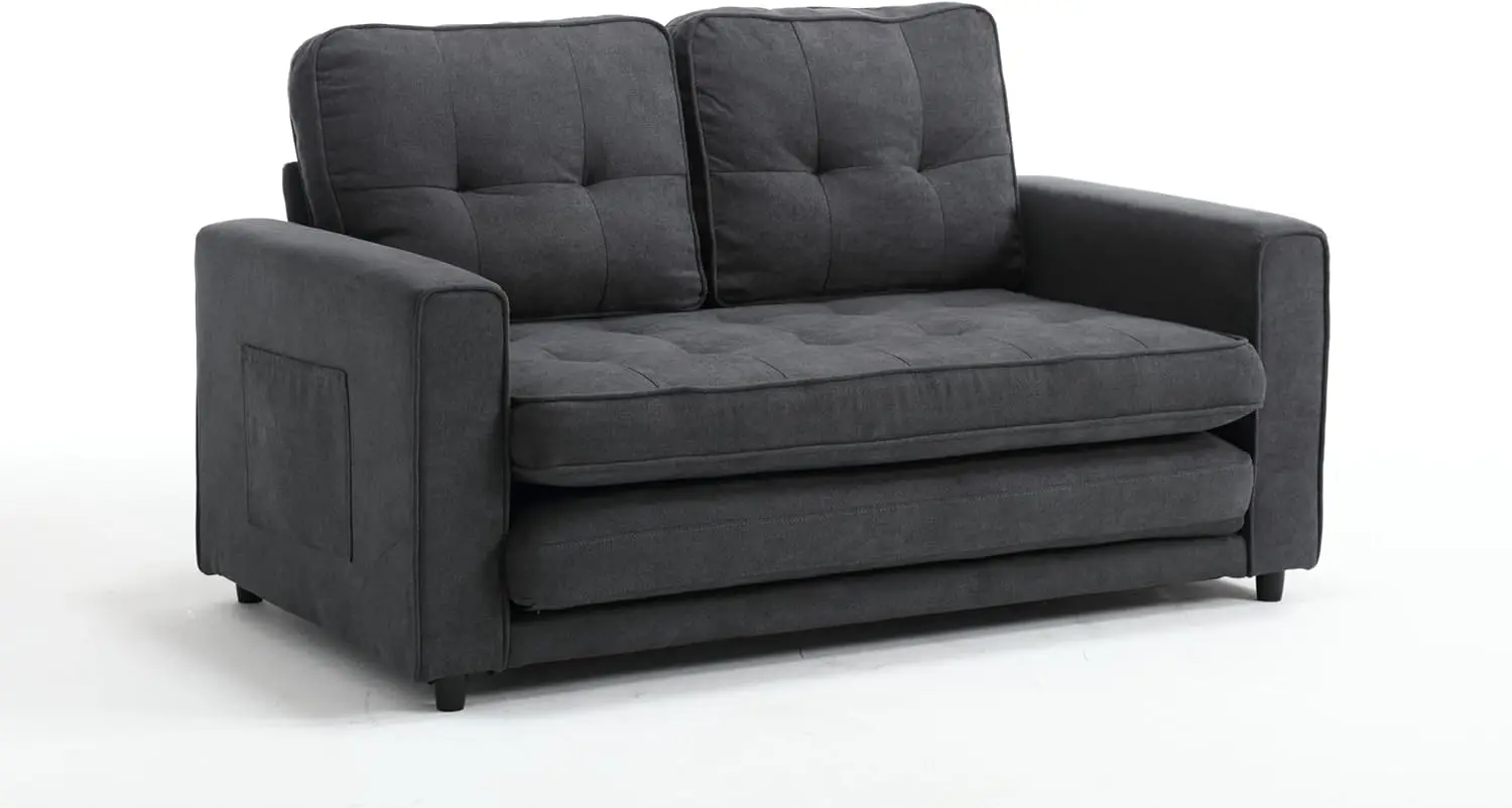 Goohome 3-in-1 Upholstered Futon Sofa Convertible Floor Sofabed,Foldable Tufted Loveseat with Pull Out Sleeper Couch Bed