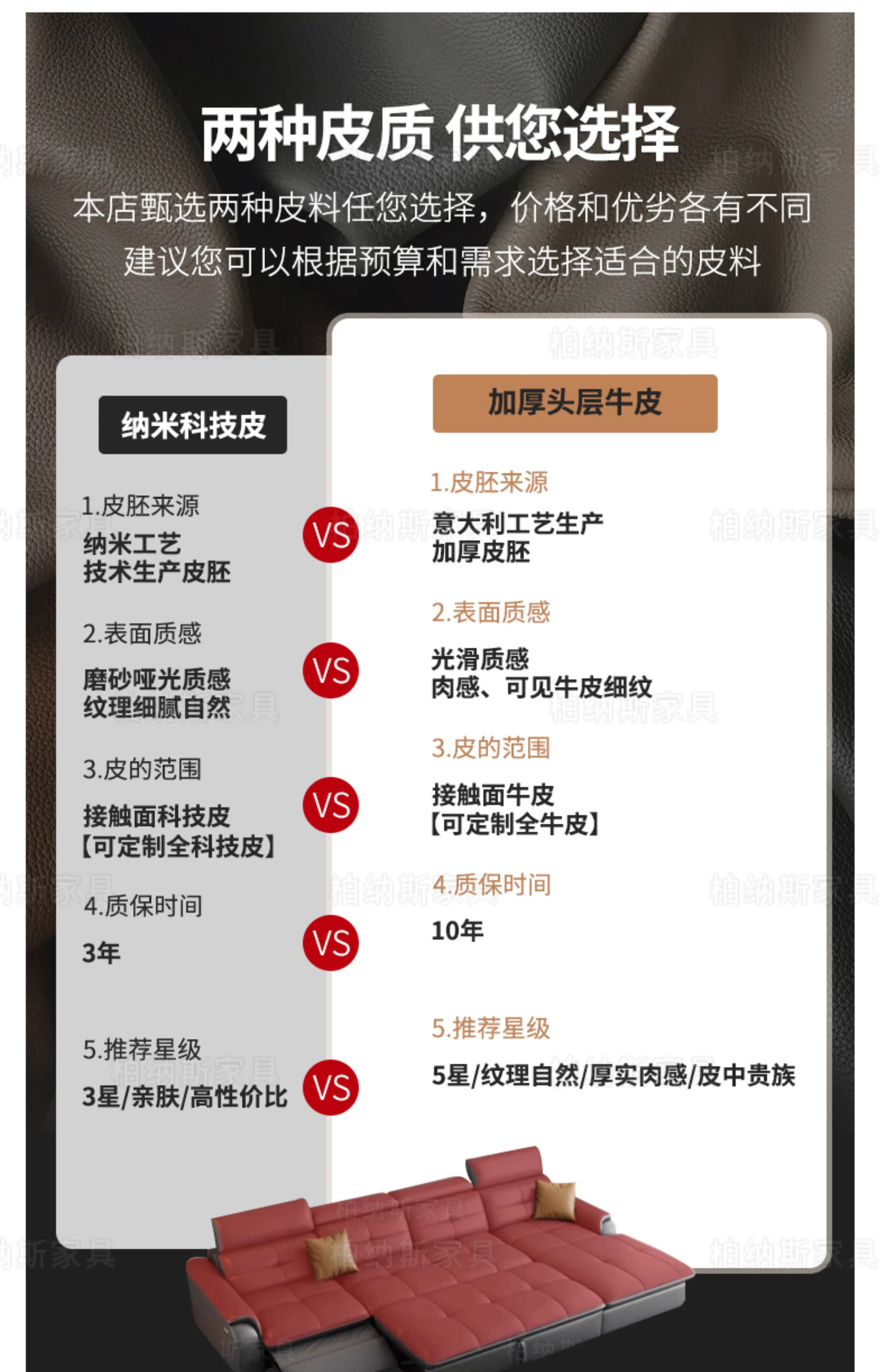 Leather material: Head layer cowhide