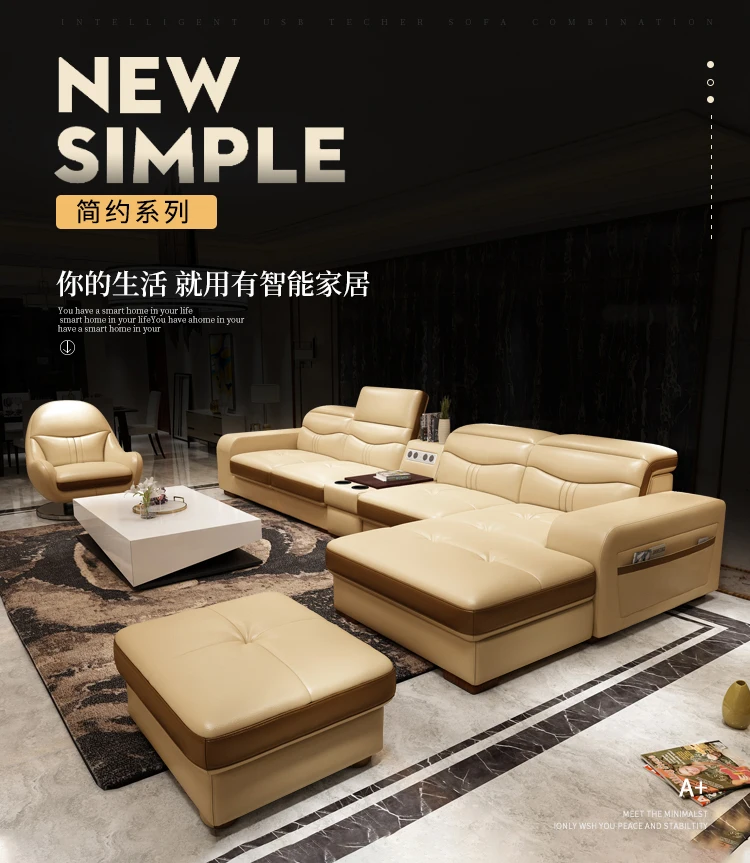 High Quality Simple Italian Leather Sofa Living Room Italian Lightweight Luxury Smart Sofa Luxury Living Room Furniture Sets