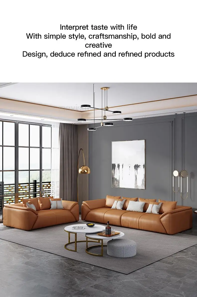 Light Luxury Leather Sofa First Modern Cowhide Nordic Small Apartment Minimalist 3 Person Chaise Divano Home Furniture