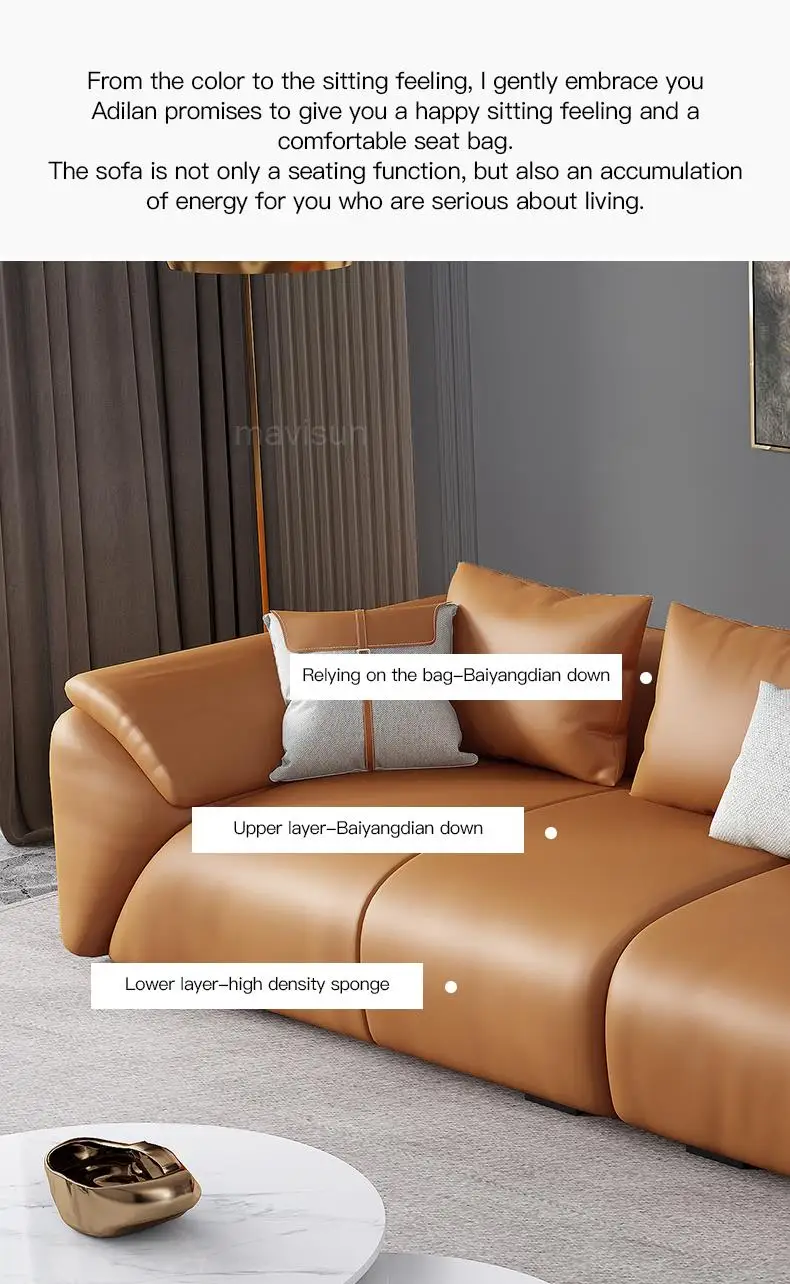 Hot Sale Light Luxury Leather Sofa First Layer Cowhide Nordic Small Apartment Living Room Three-Person Chaise Corner Down Sofa