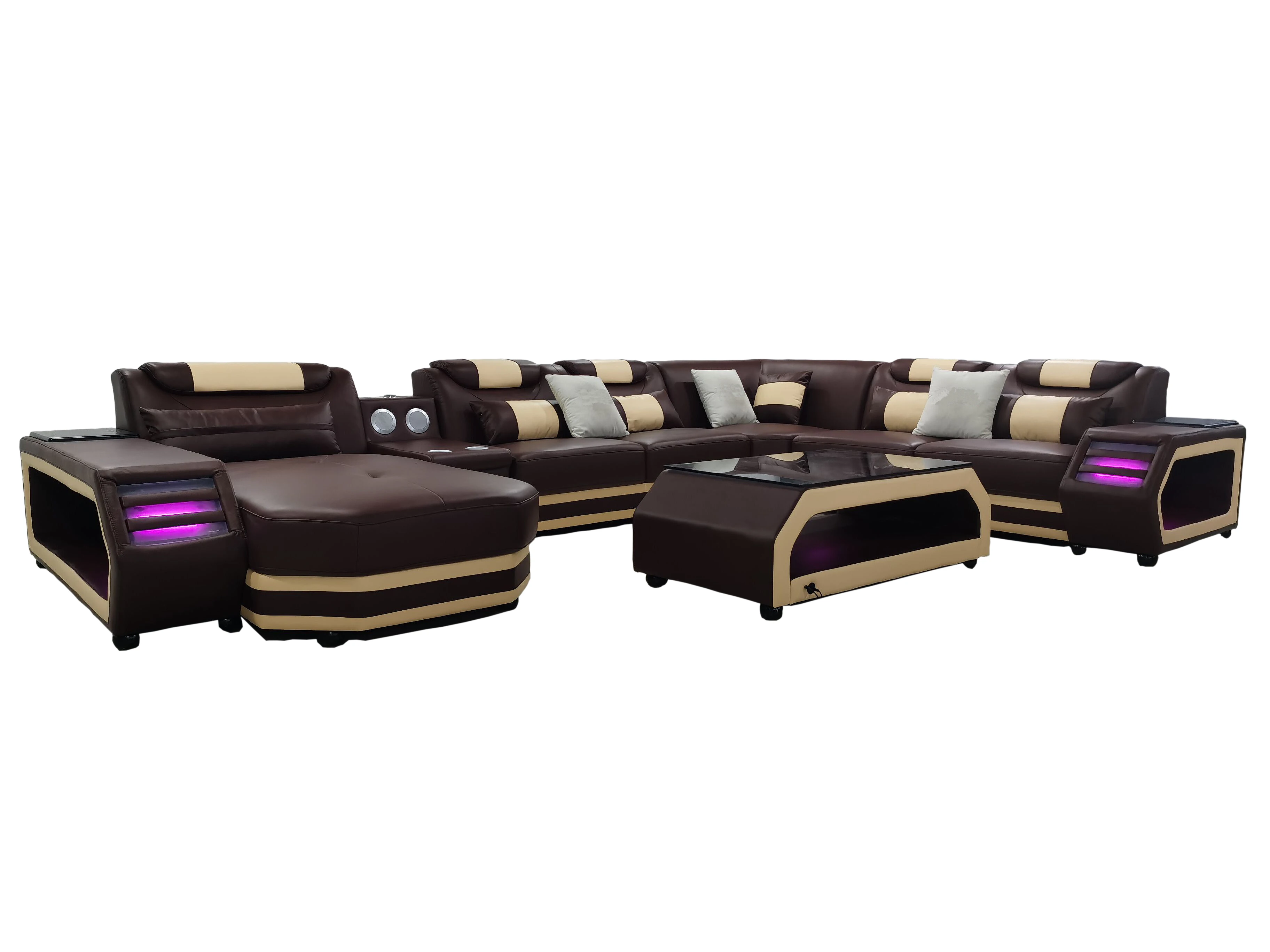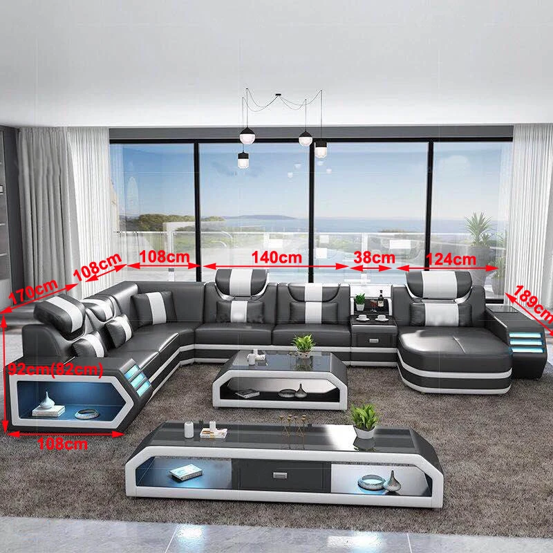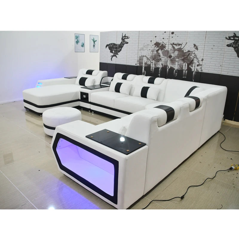 Hot Sale Modern Living Room Sofas White Italian Half Leather Couch U Shape Chesterfield Sofa