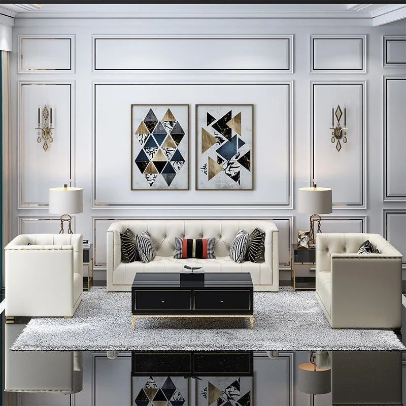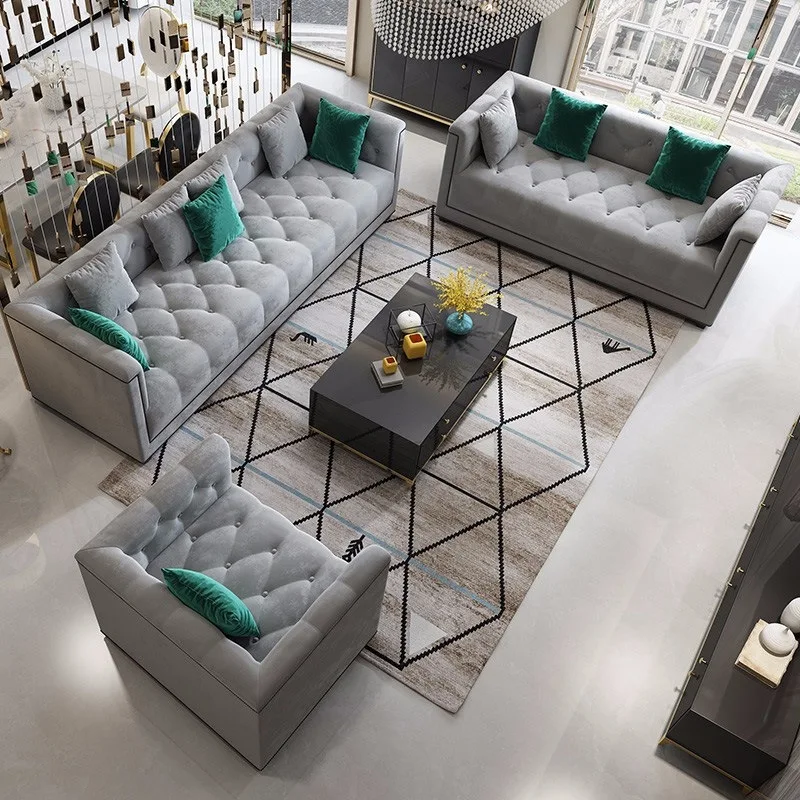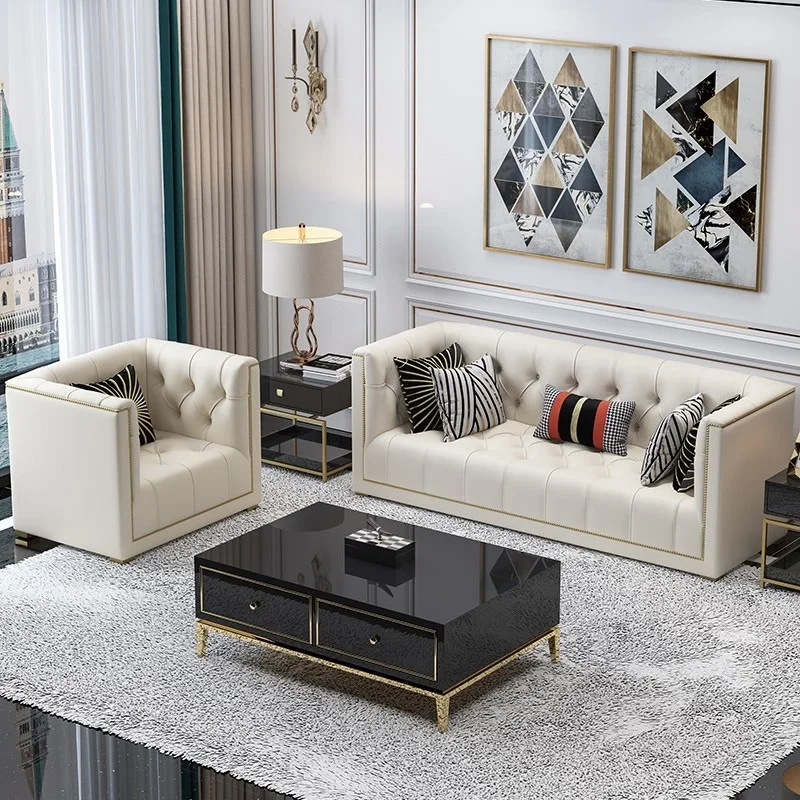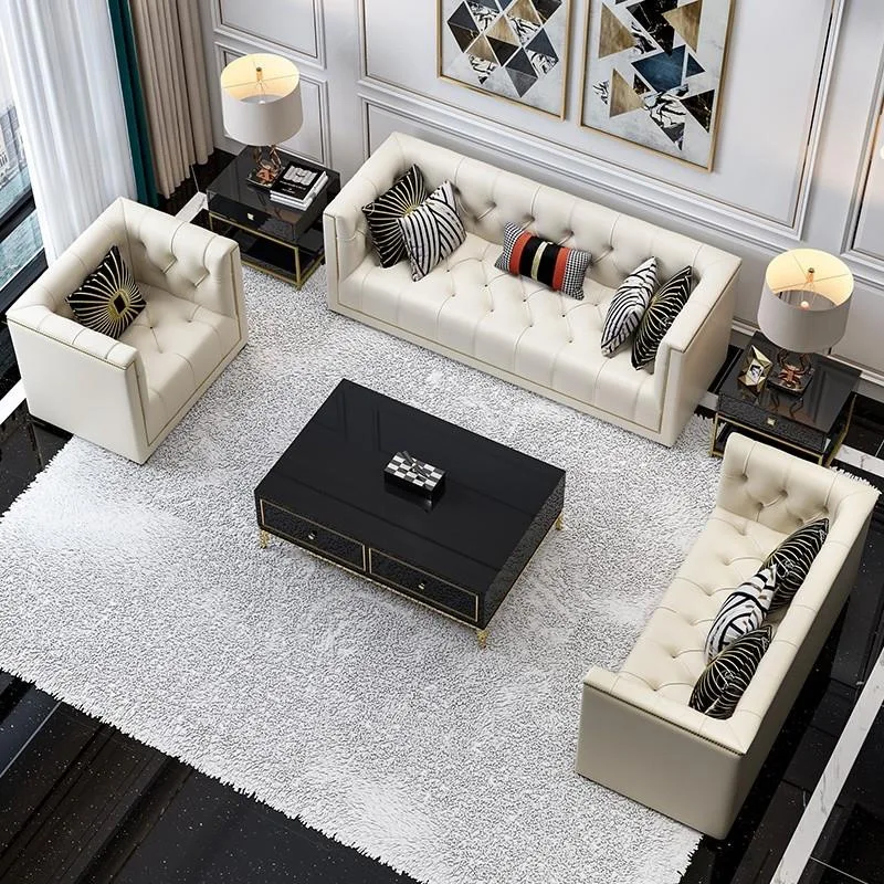 Light luxury postmodern pull point leather sofa matt velvet pull buckle three-seat sofa