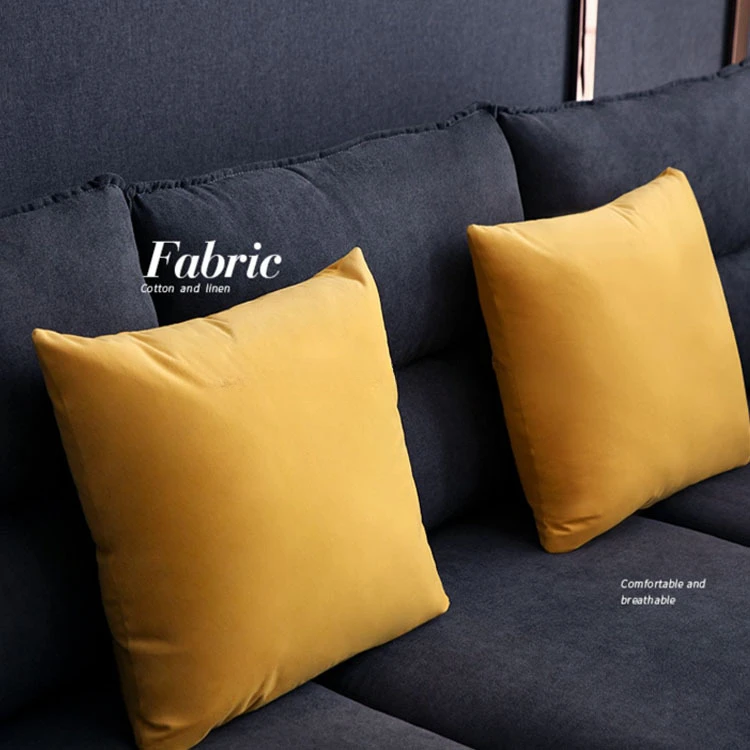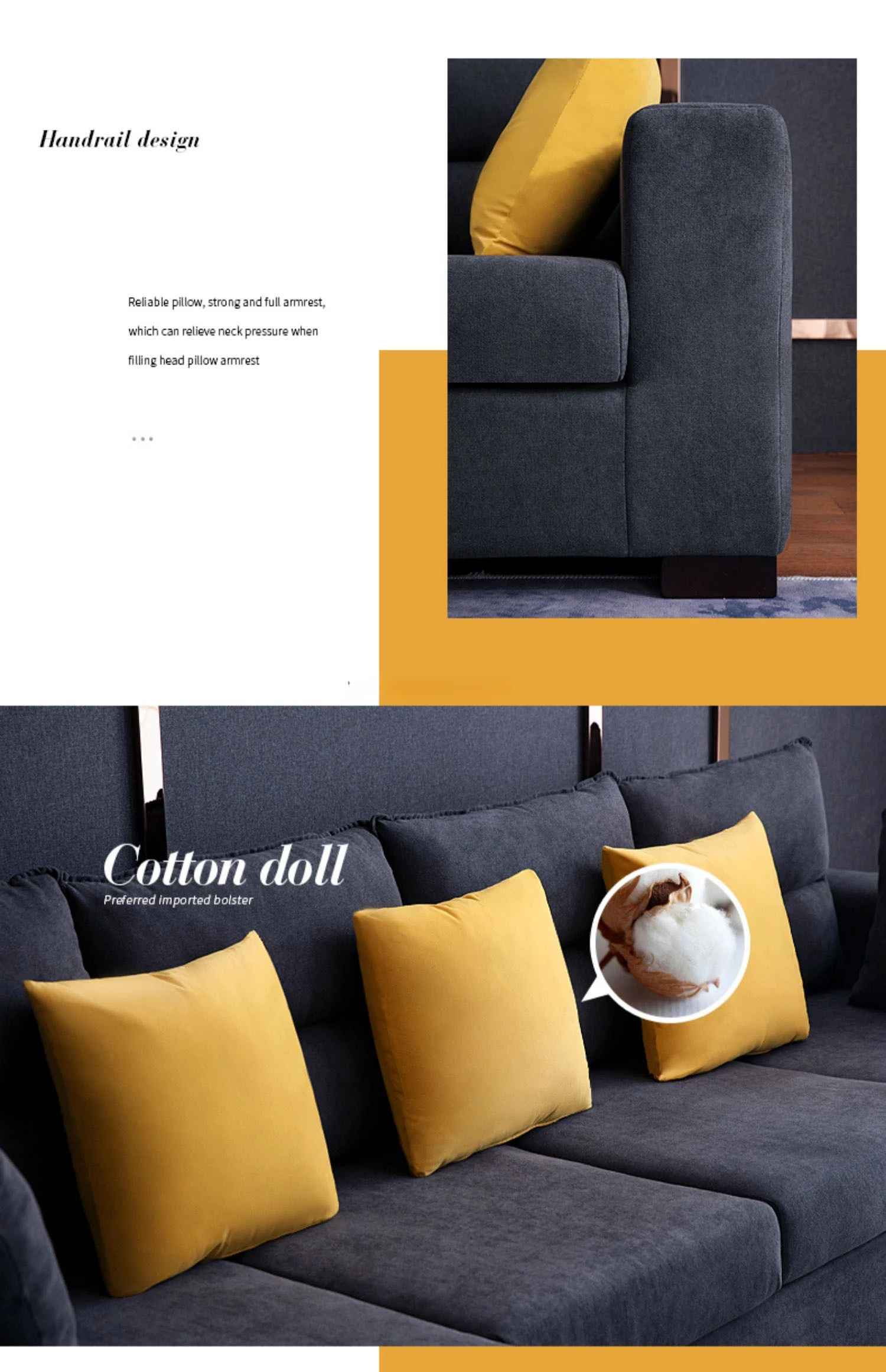 Selected high-grade Cotton and linen, high density rebound sponge, natural solid wood frame, natural solid wood legs, plastic non-slip sole