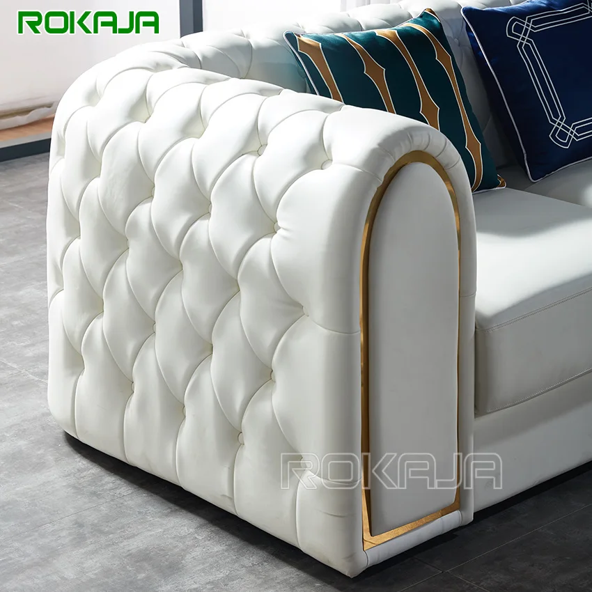 Italian 1 2 3 People Sofa Set Living Room Furniture Pull Buckle Luxury Sofas White Leather Modular Office Armrest Sofa Sets