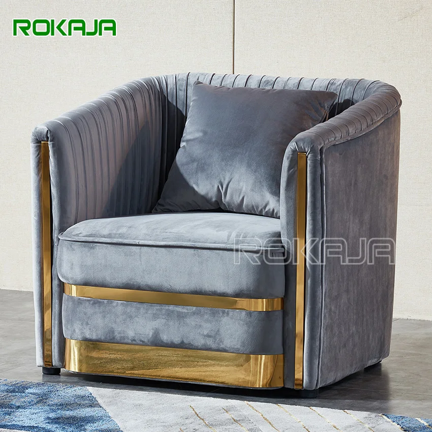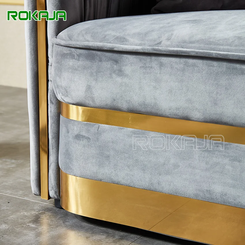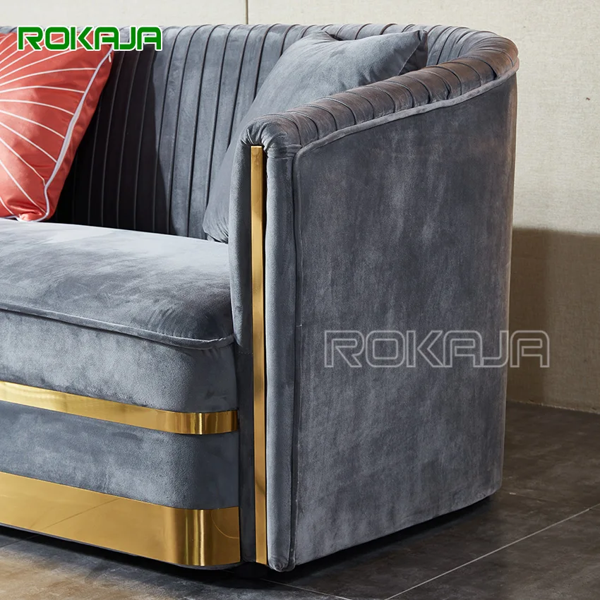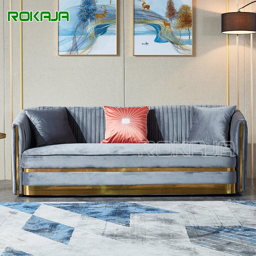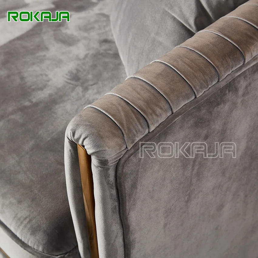 Italian Designer 3 pieces Sofa Set Velvet Grey Sofa Living Room Furniture Sets Gold Luxury Sectional Couch Cover Sofa