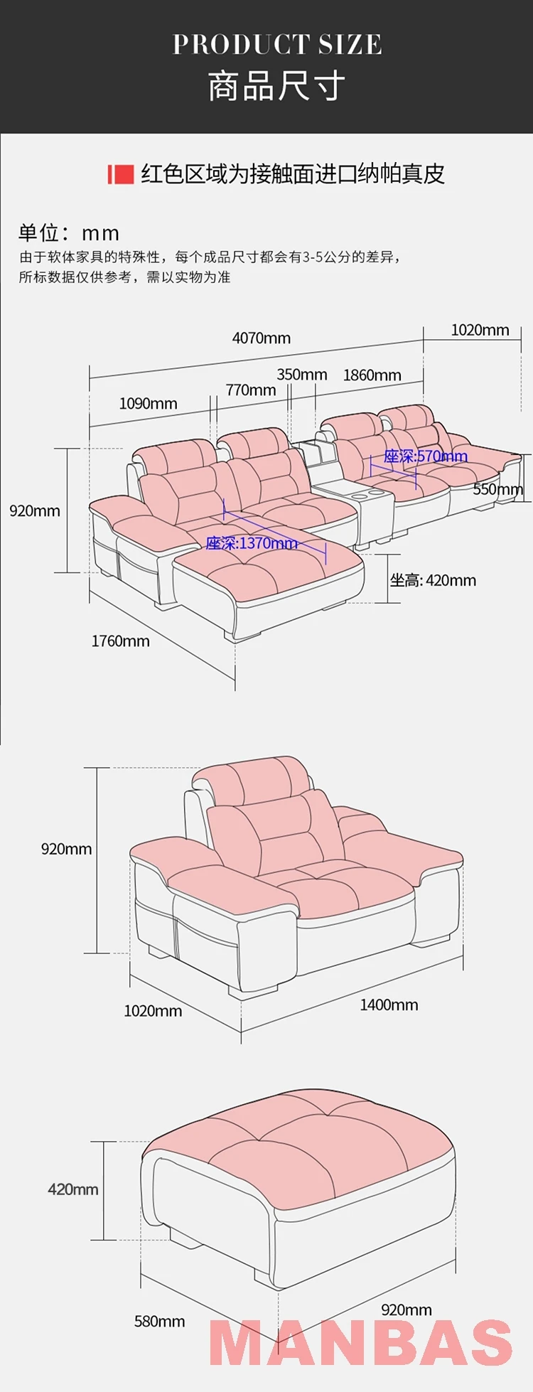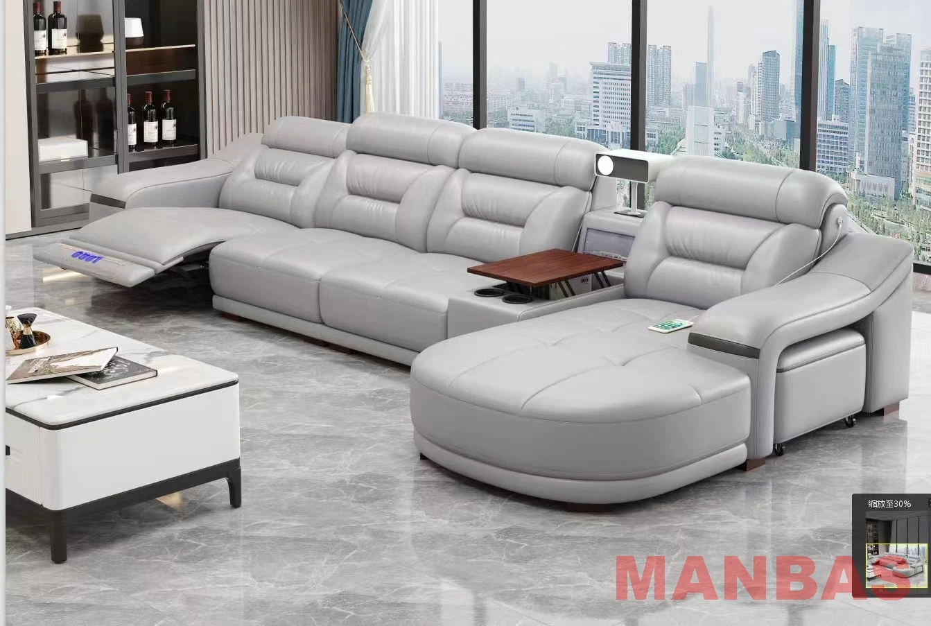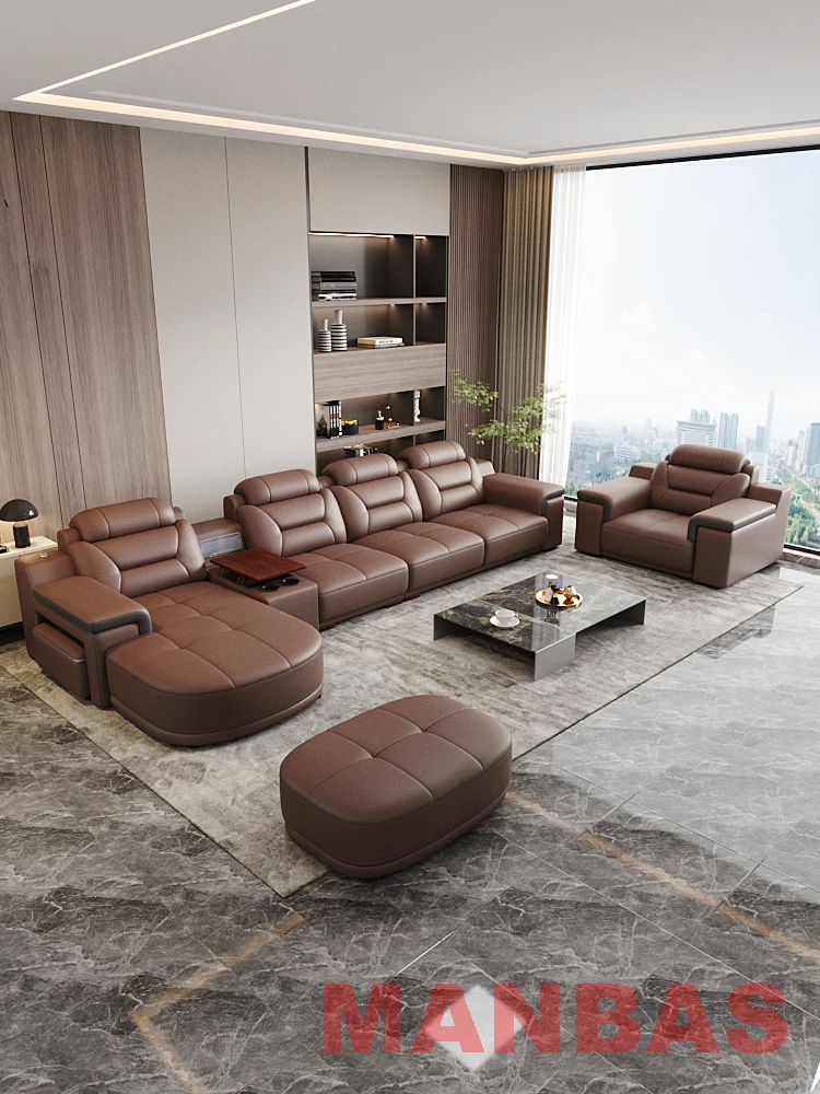 Italian Genuine Leather Sectional Sofa Set with Electric Recliner, Bluetooth Speaker and Projector By MINGDIBAO Livingroom Couch