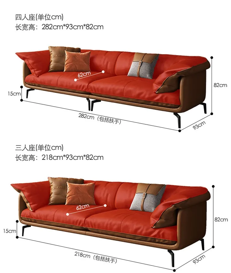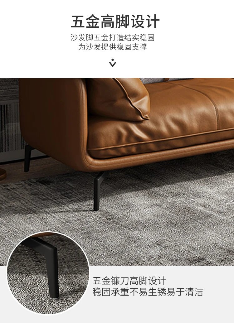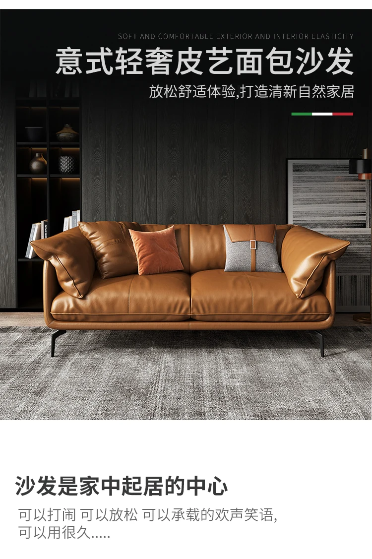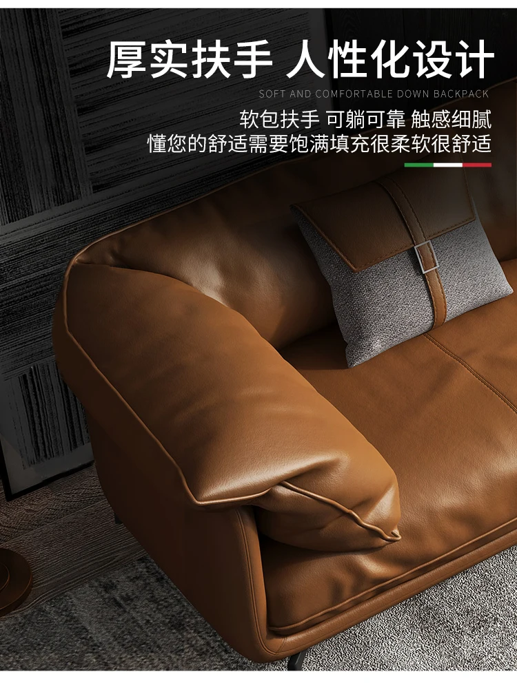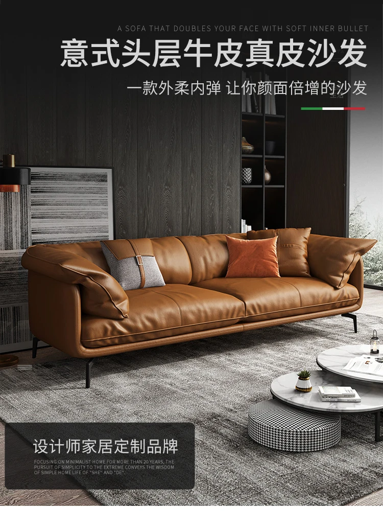 Italian leather sofa head layer cowhide light luxury luxury Nordic living room small apartment straight line sofa design sense