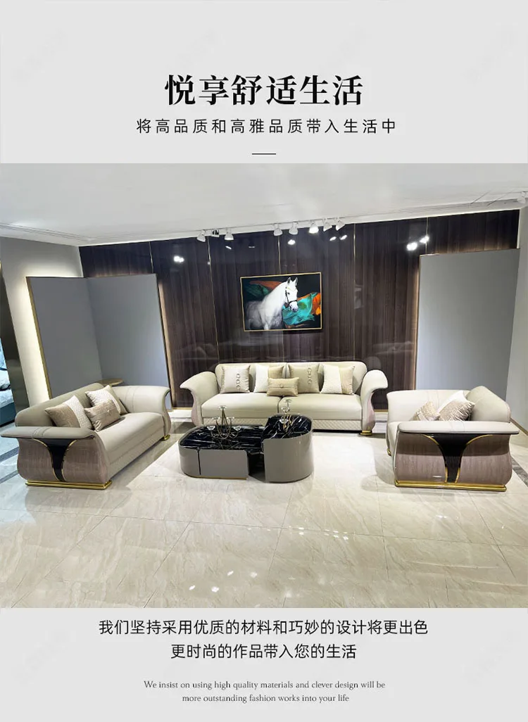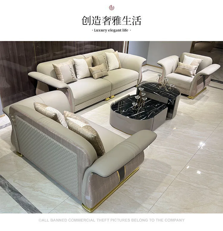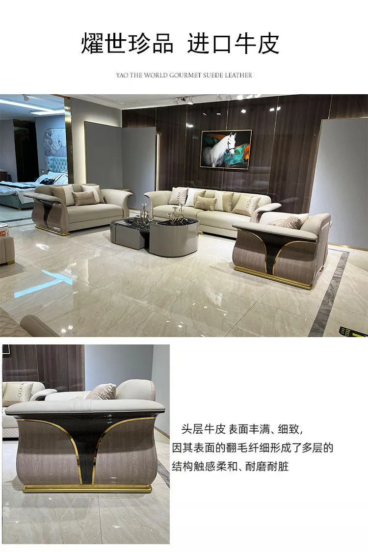 Italian light luxury high-end luxury villa leather sofa modern large living room sofa new