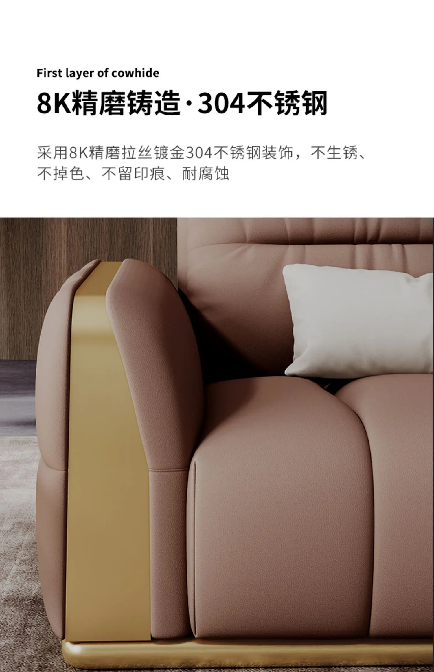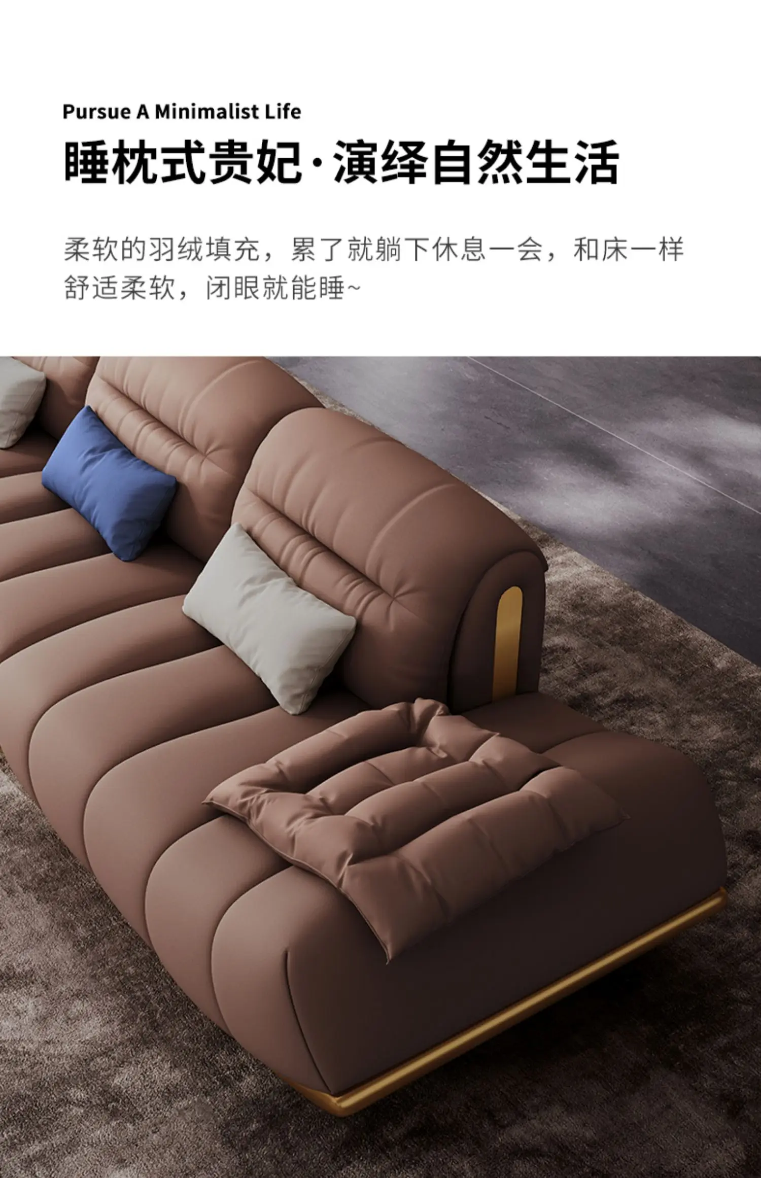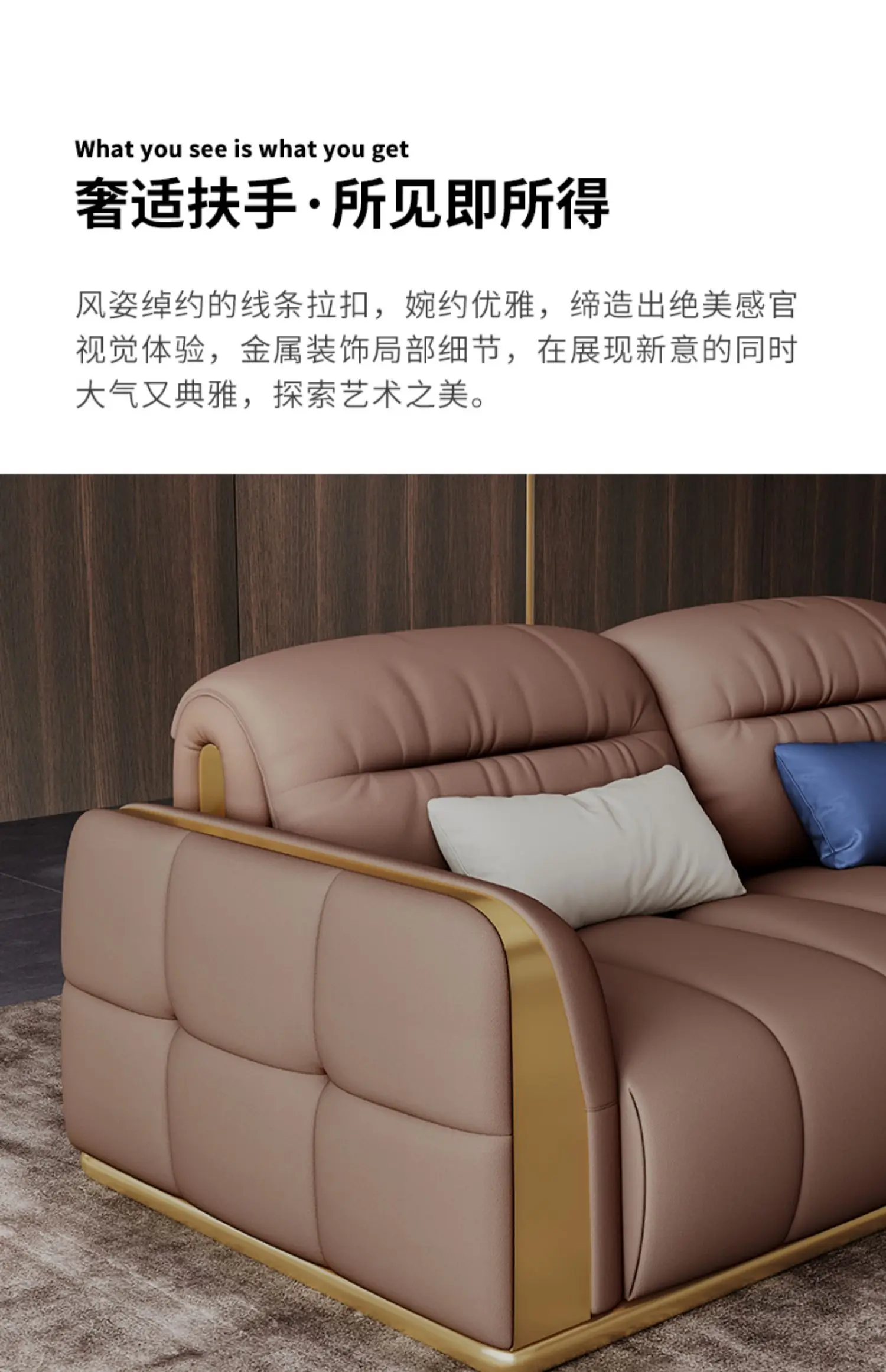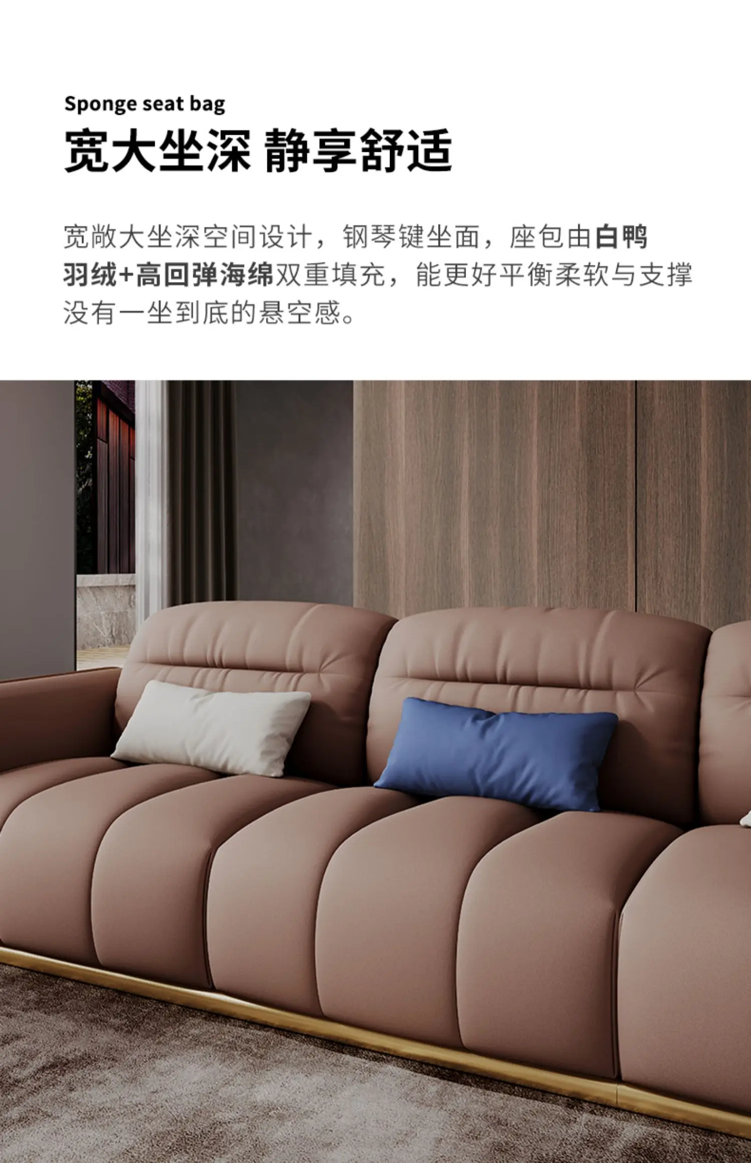 Italian light luxury leather sofa combination living room modern straight row large three person noble consort sofa