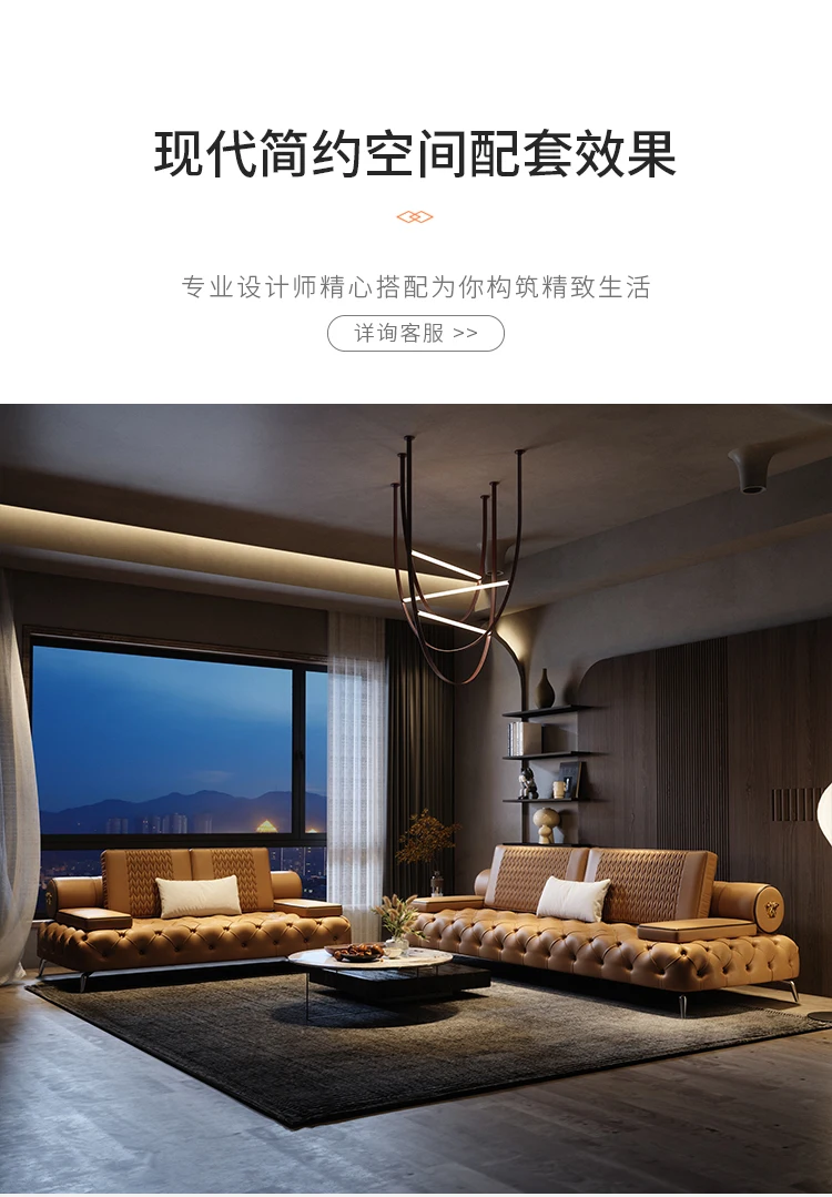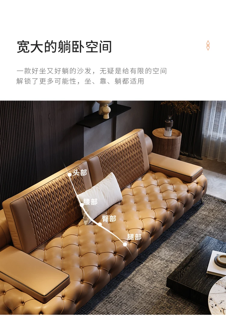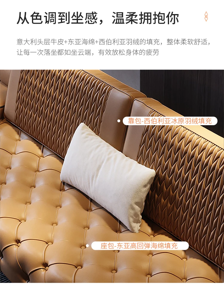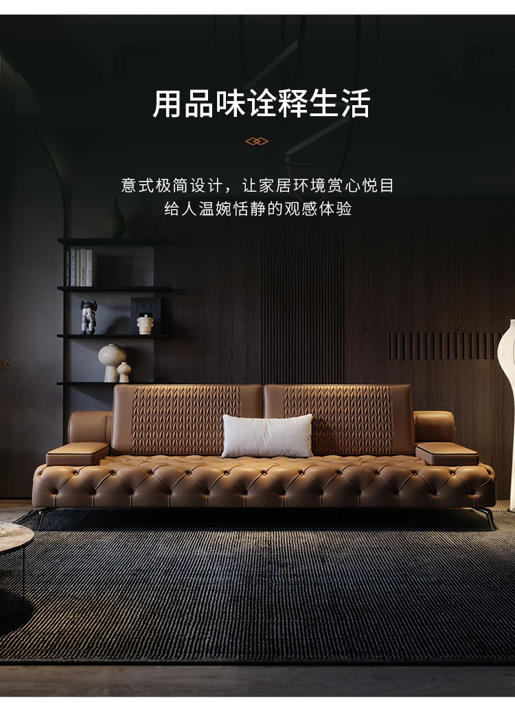 Italian light luxury leather sofa head layer cowhide modern simple straight row sofa living room
