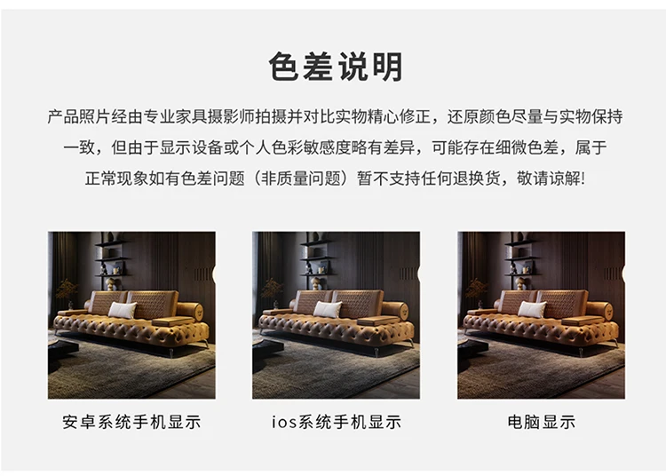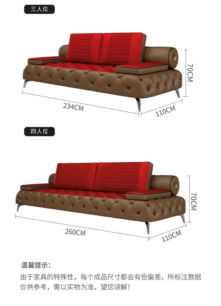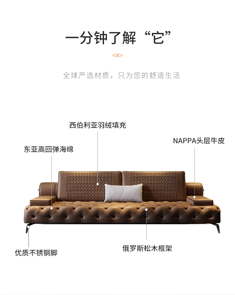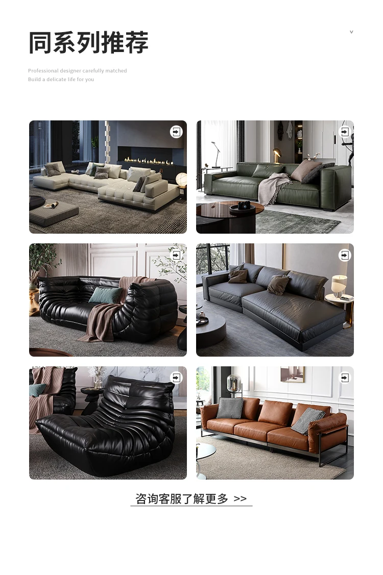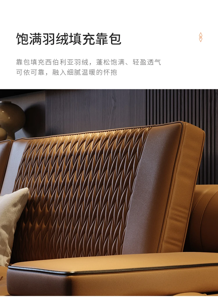 Italian light luxury leather sofa head layer cowhide modern simple straight row sofa living room
