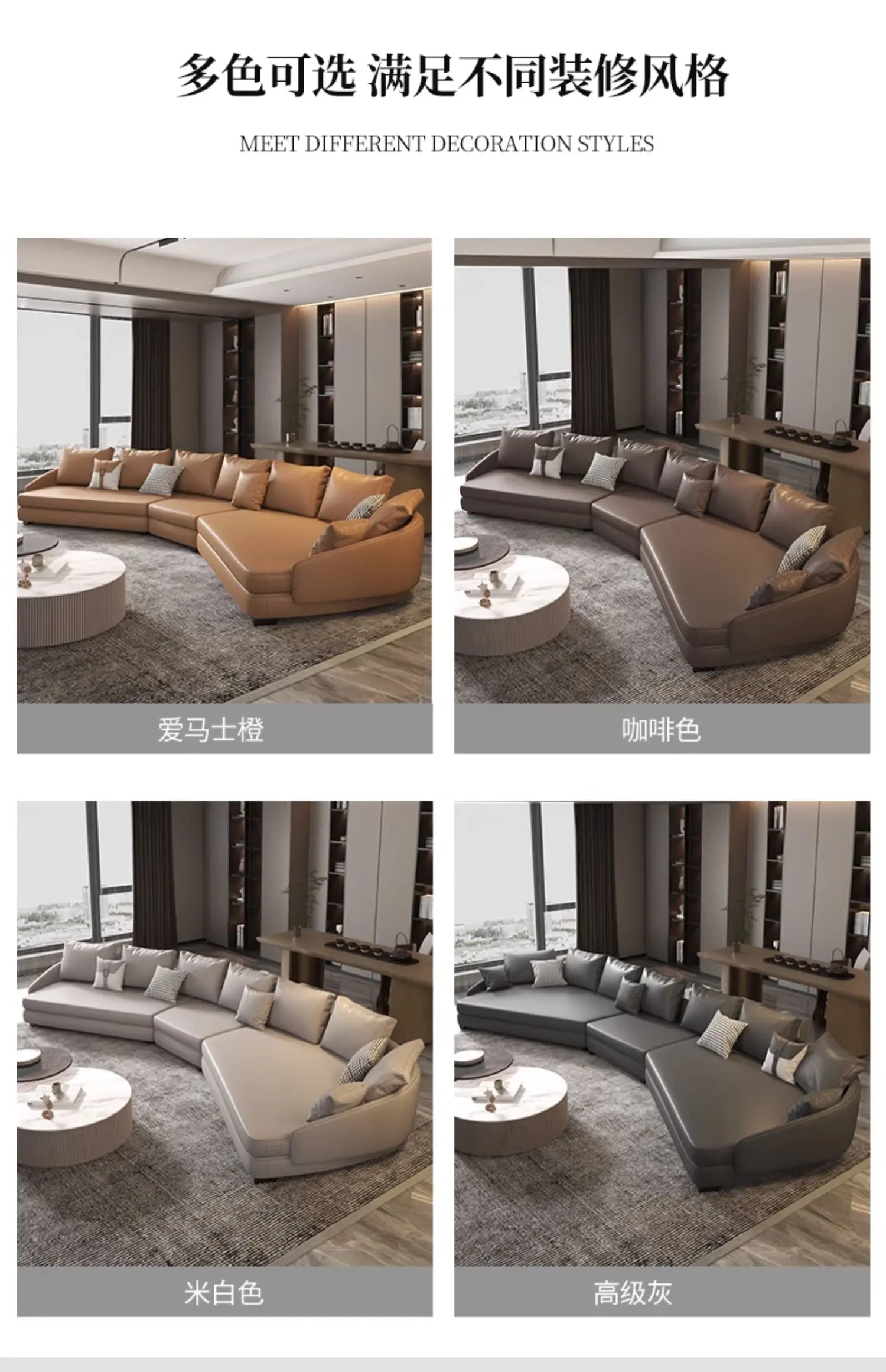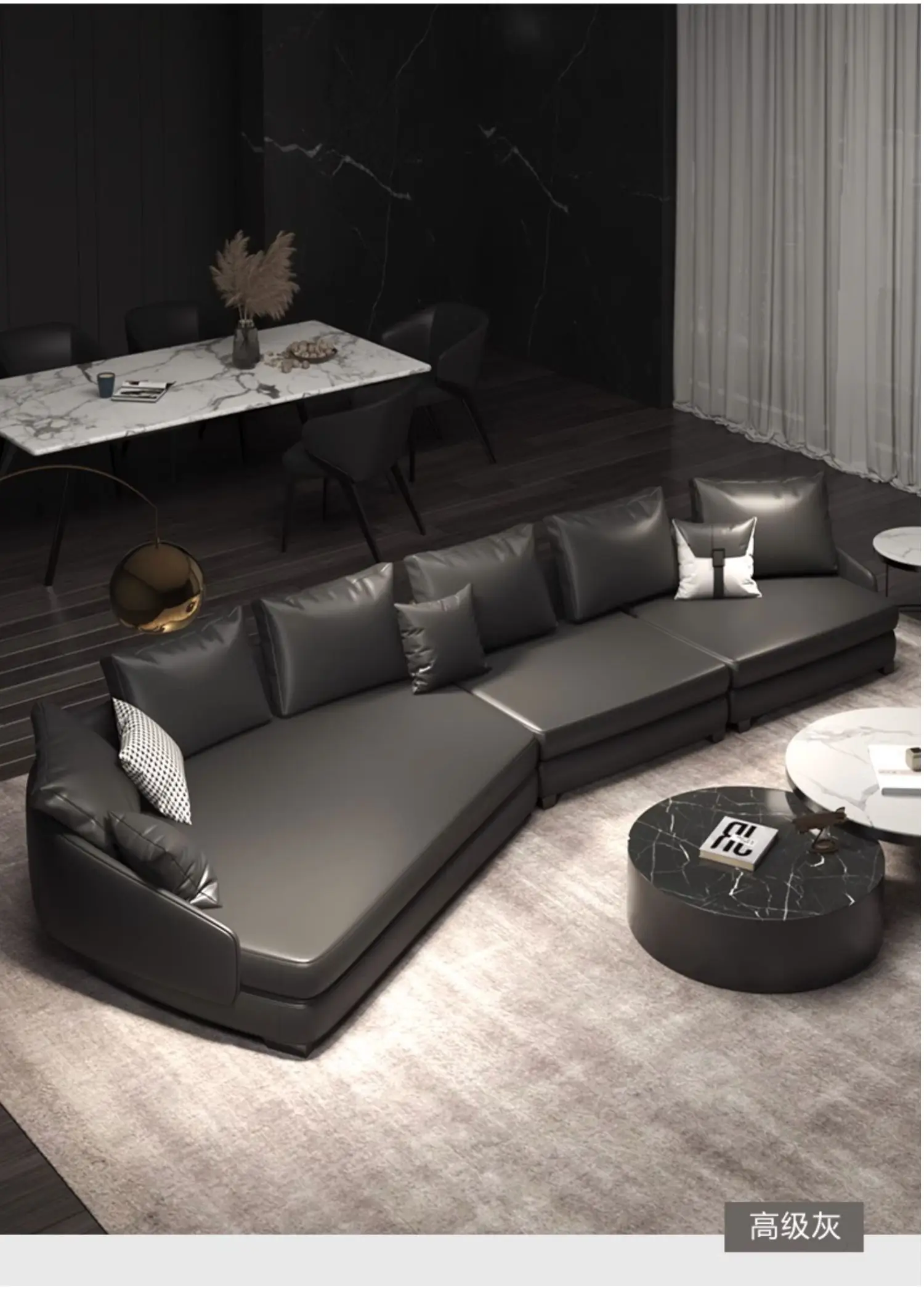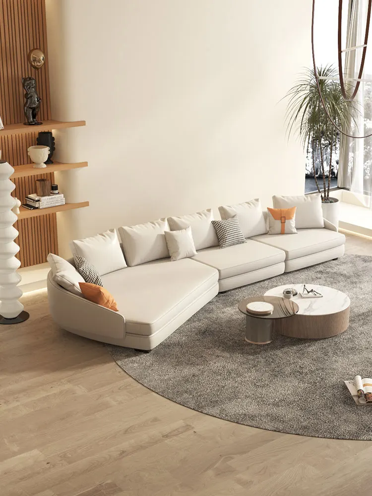 Italian Minimalist Curved Leather Sofa Light Luxury Special-Shaped Corner Living Room Art-Sofa Combination
