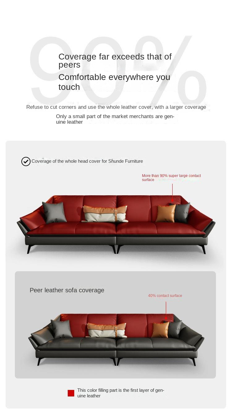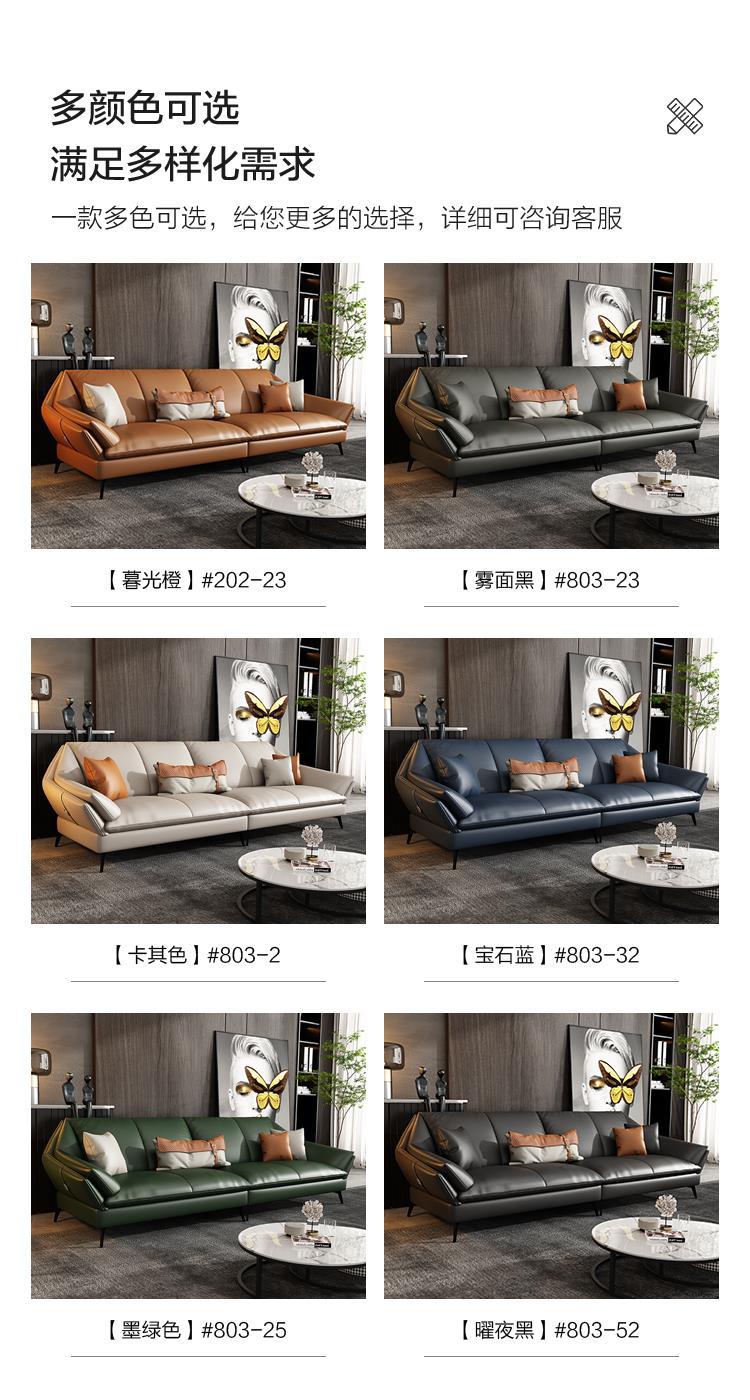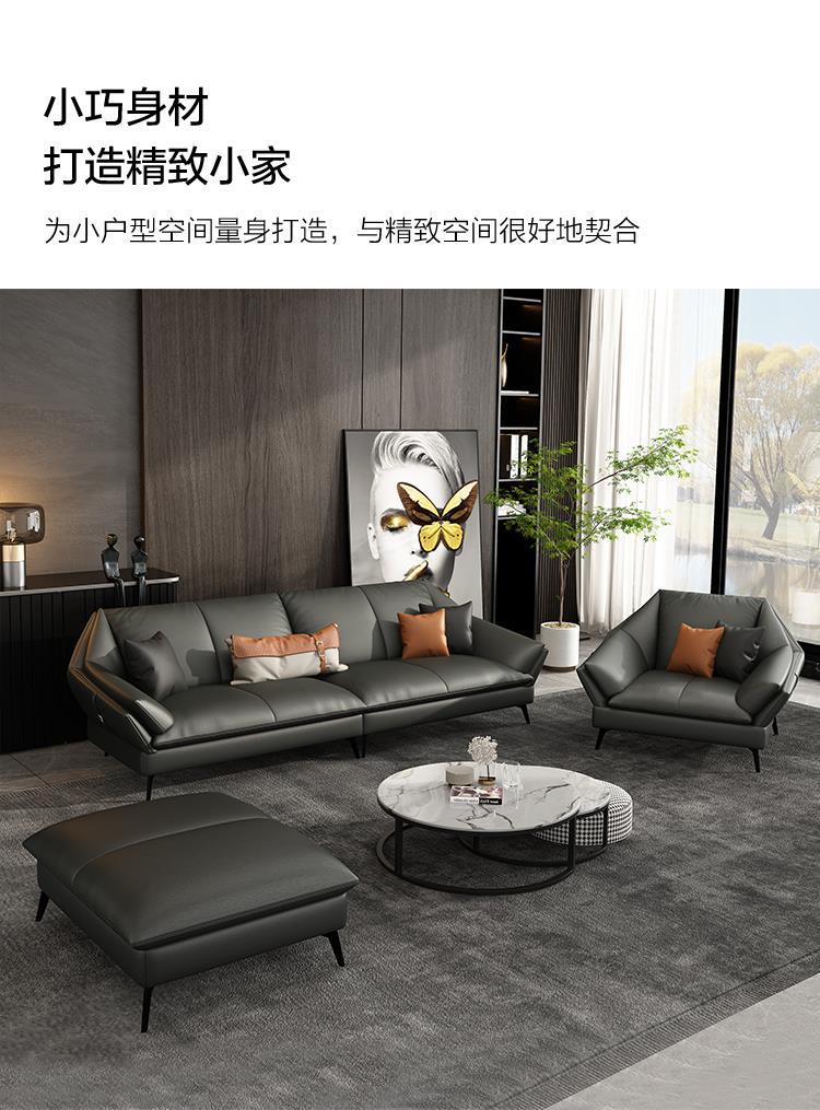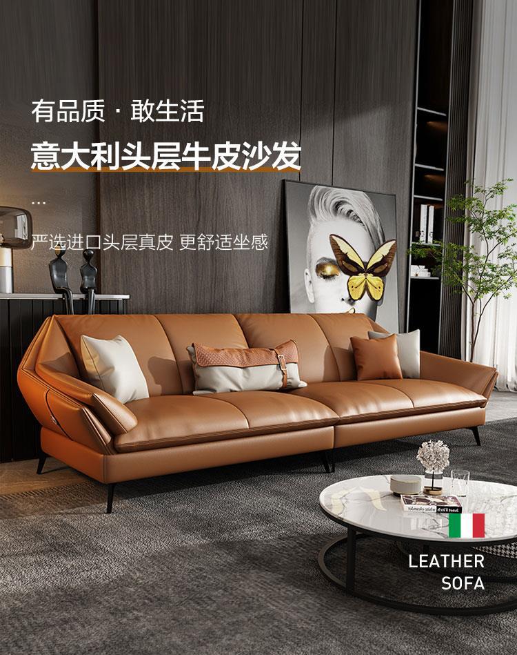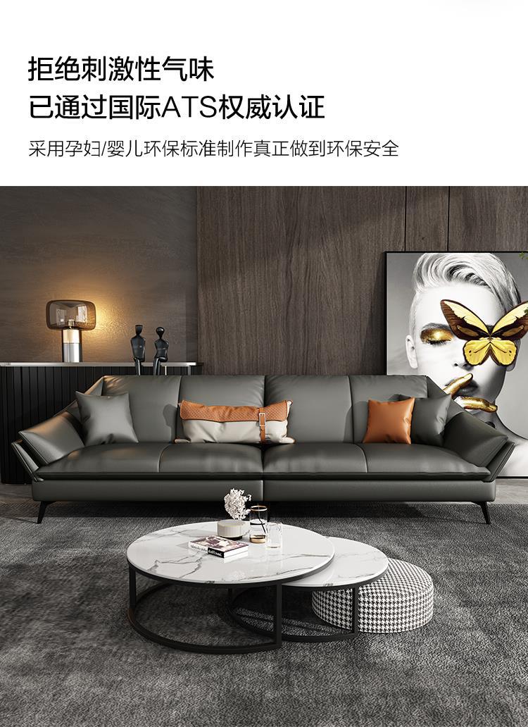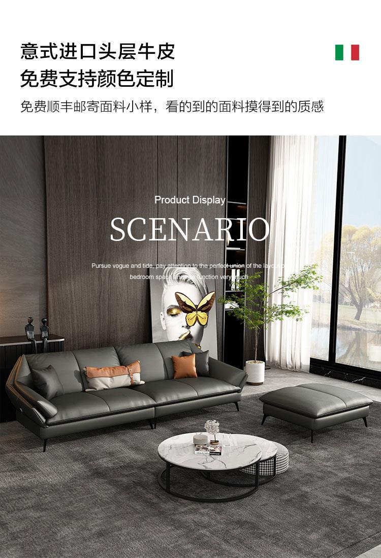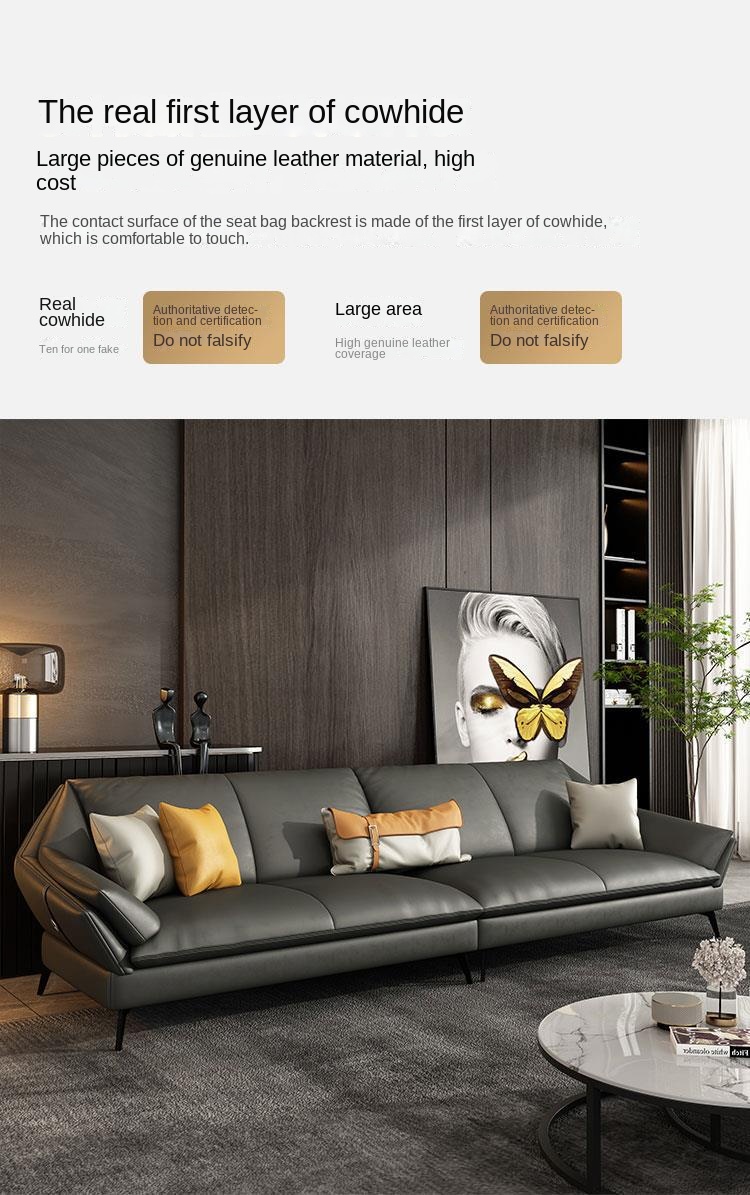 Italian Minimalist Leather Sofa First Layer Cowhide Modern Minimalist Nordic Living Room Light Luxury Straight Row Leather Sofa