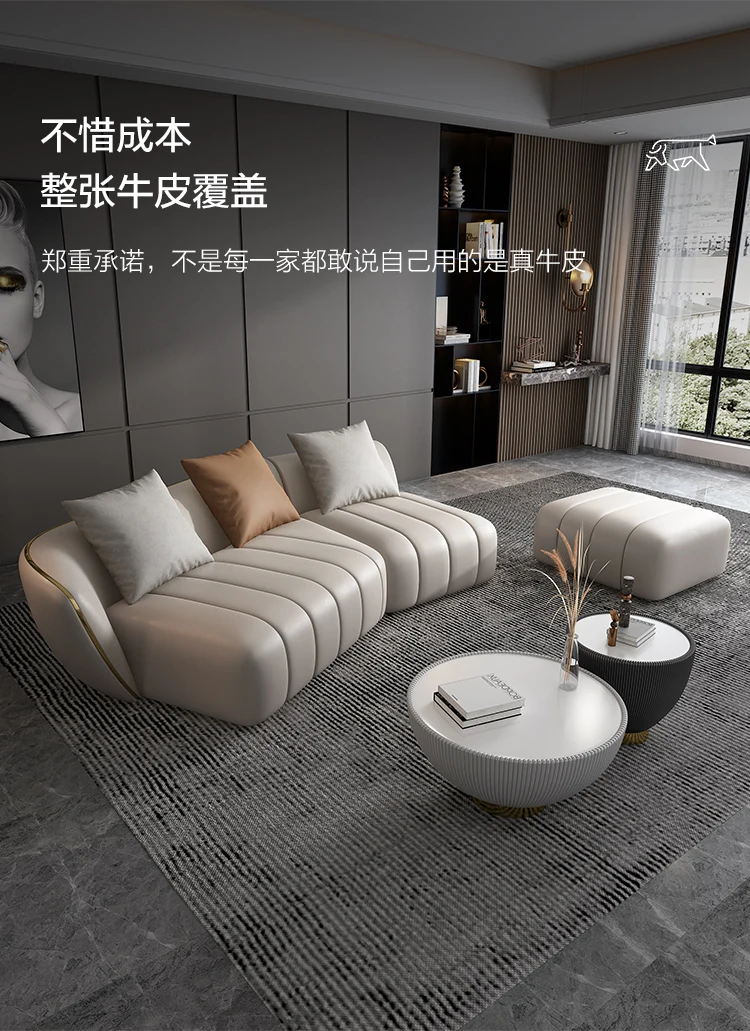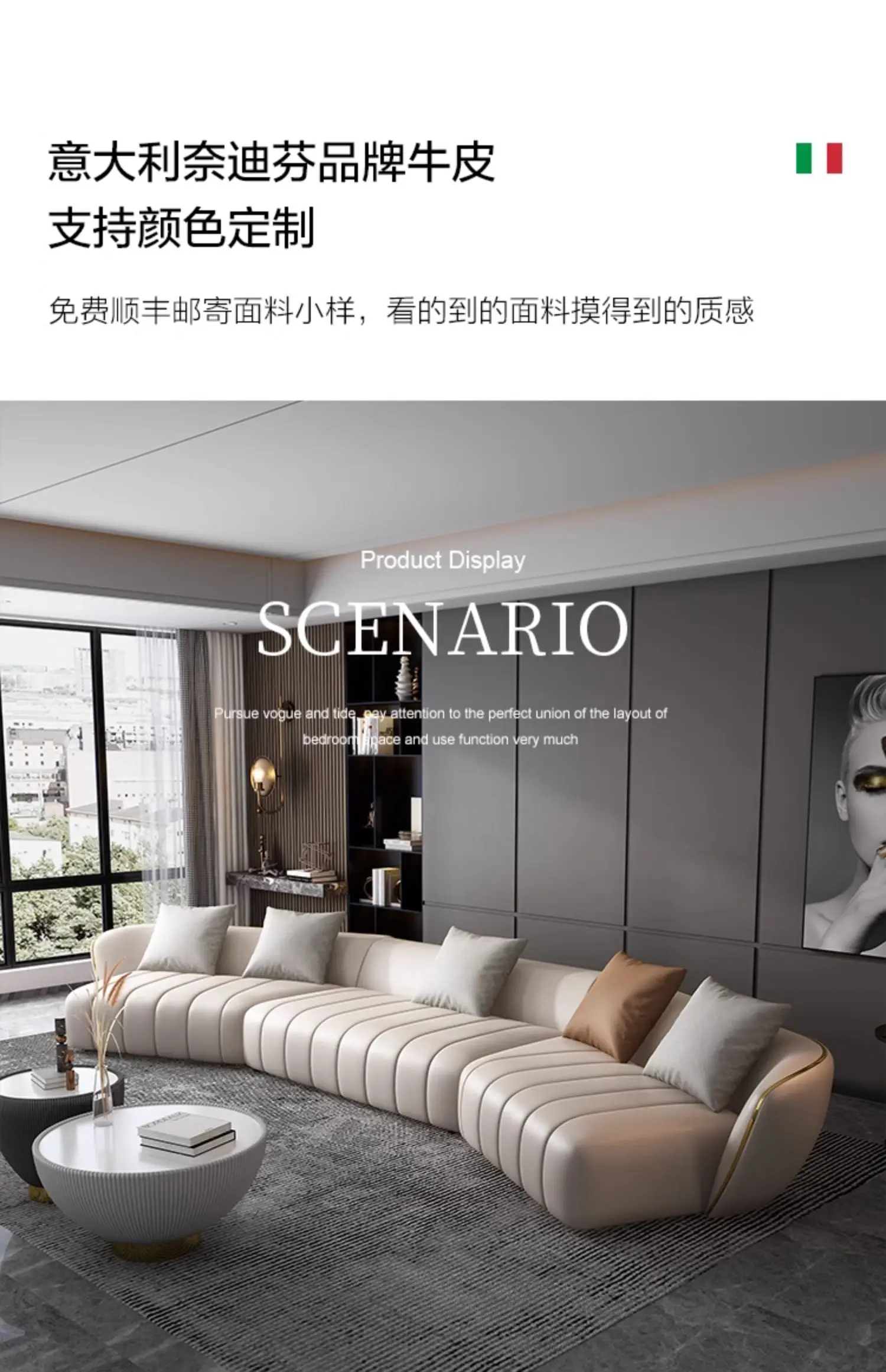 Italian minimalist leather sofa head layer cowhide simple style creative living room corner leather sofa