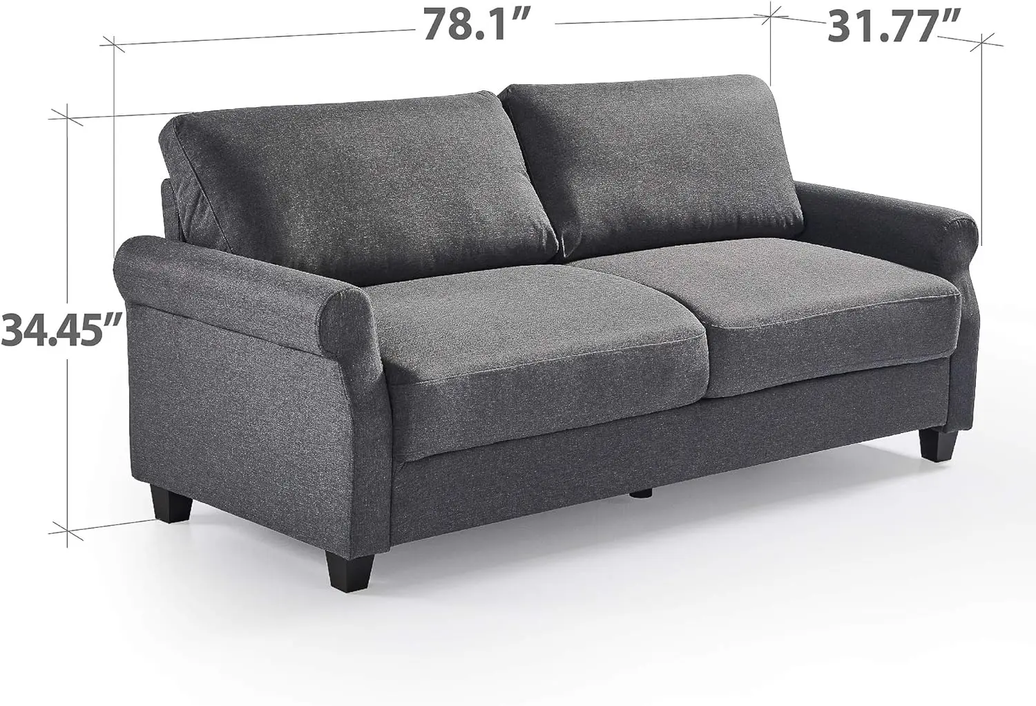 - RIGHT AT HOME, WHERE EVER HOME MAY BE - Like the "little black dress" of your living room, this timeless sofa features soft lines, a neutral toned fabric and a soft yet supportive feel that pairs effortlessly against any home interior