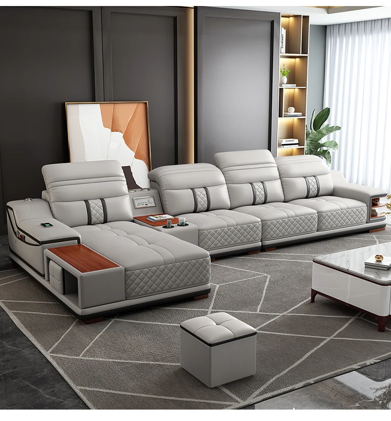 L Shape Corner Living Room Sofa Leather Adults Mid Century Modular Living Room Sofa Couch Set Floor Divani Soggiorno Decoration