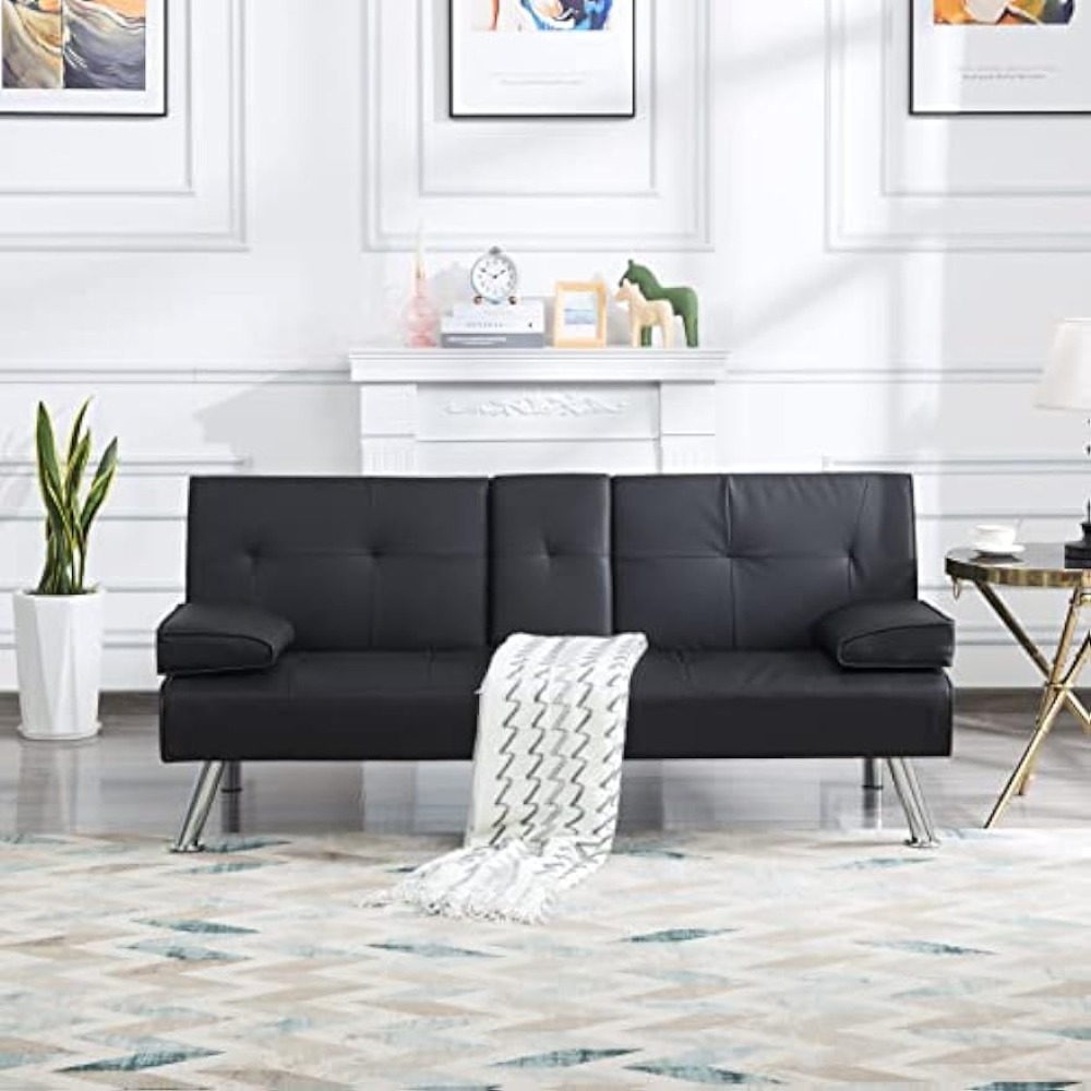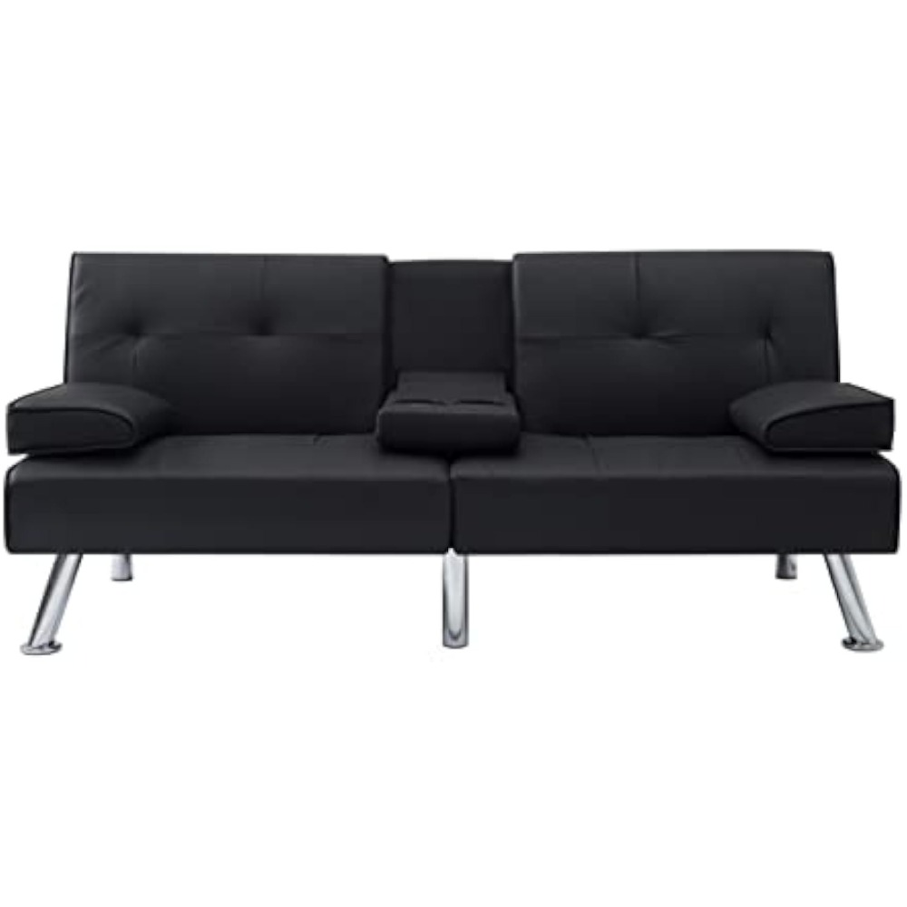 - 66.9" Futon sleeper sofa bed, a drop down middle back with 2 cup holders.